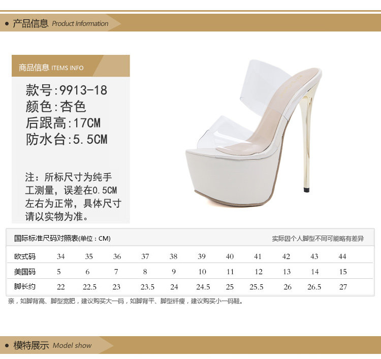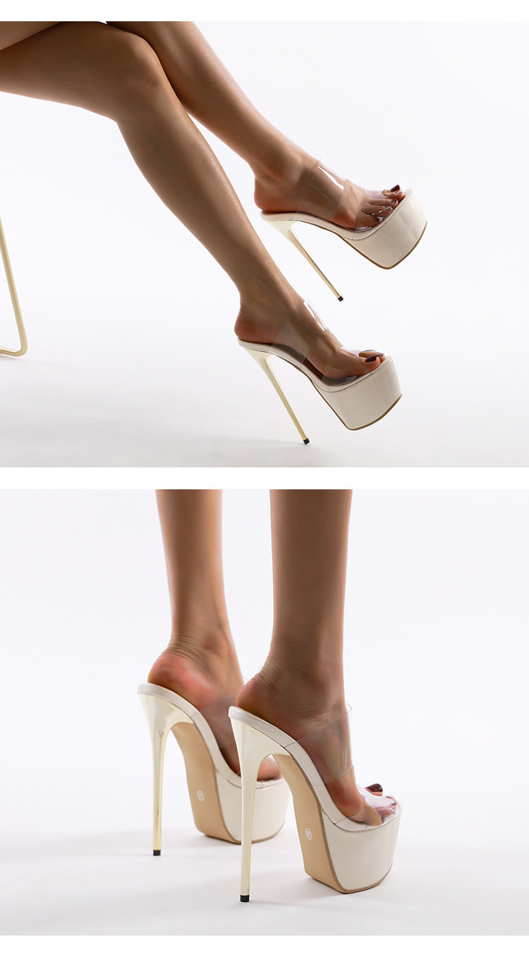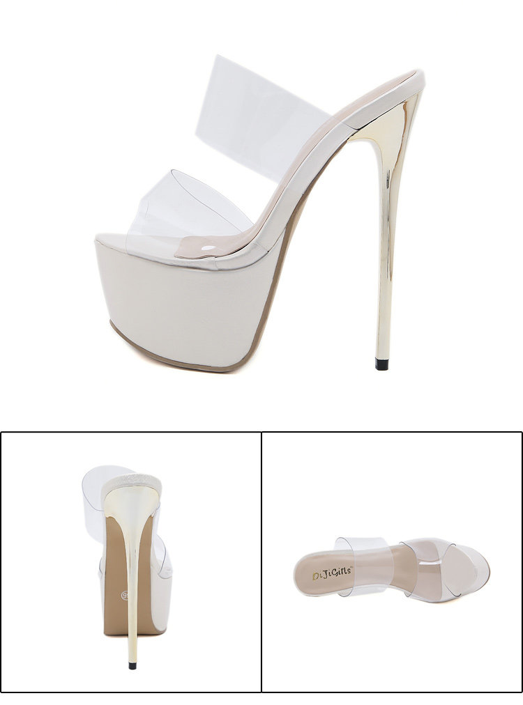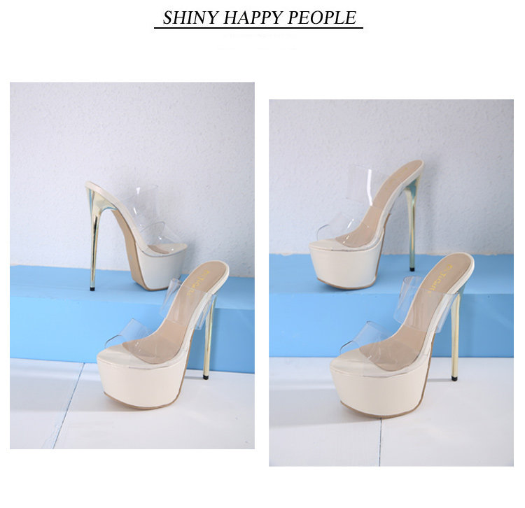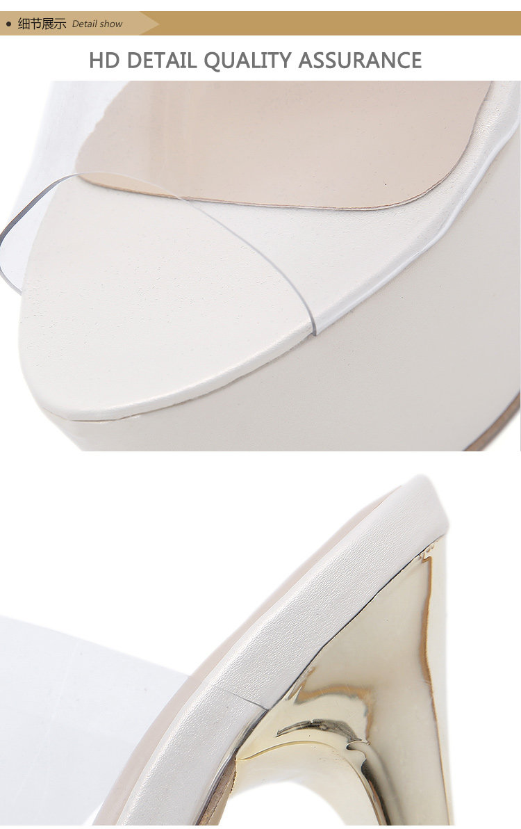 Zapatillas de tacón alto de goma, estilo europeo y americano, tacones de aguja de verano, plataforma impermeable, talla grande 16 cm, tacones altos transparentes dorados