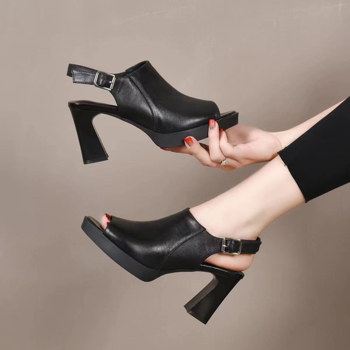 Verano nueva punta abierta de dos tipos de Sandalias de tacón alto tacón grueso moda tejida zapatos de mujer más tamaño mamá zapatos al por mayor