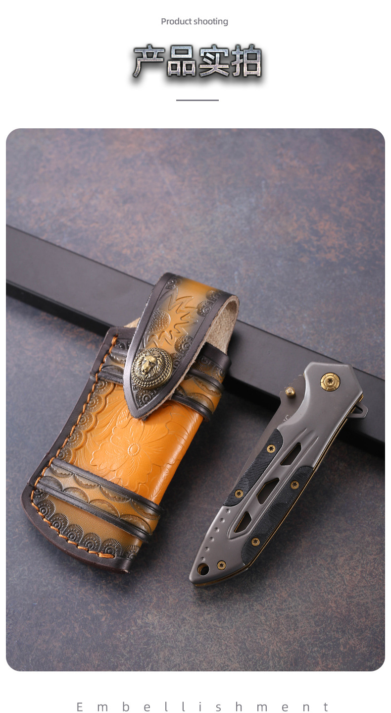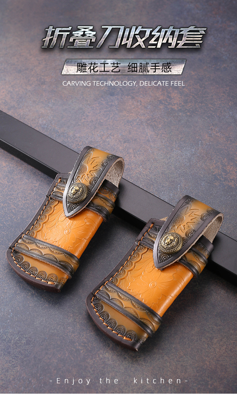 Yangjiang fábrica al por mayor cuchillo plegable caso de cuero de almacenamiento cuchillo caso al aire libre Biblioteca cuchillo vaina cuchillo Shell cintura colgando cuchillo caso