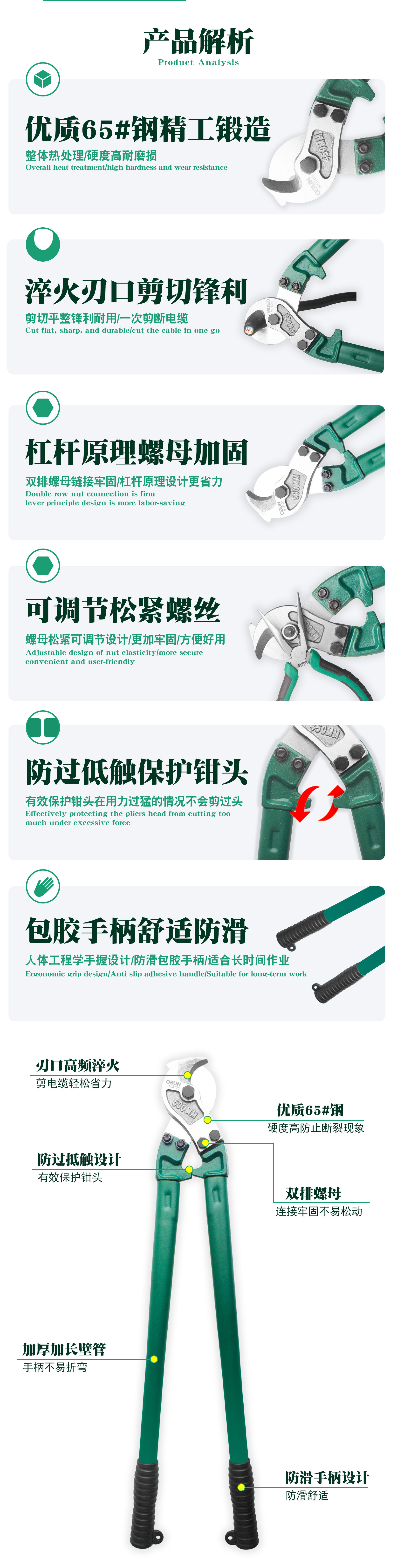 Oubang herramienta tijeras de cable manual pesado alicates de interruptor de alambre de 18 pulgadas de 42 pulgadas tijeras de interruptor de alambre 24