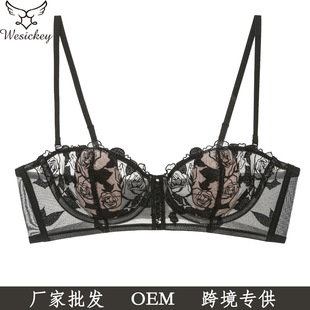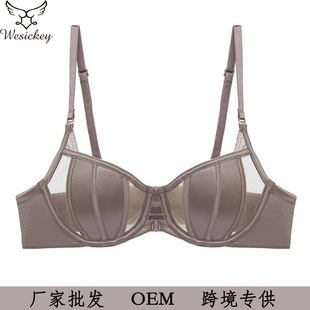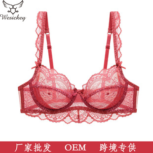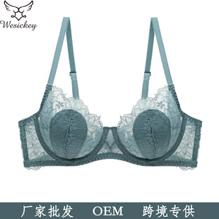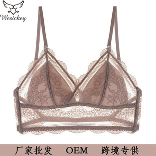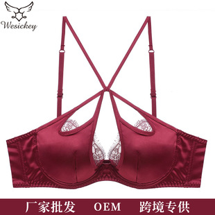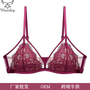 Europa y América nueva ropa interior de encaje sexy de las mujeres delgada espalda pequeño pecho empuja hacia arriba el sujetador grande del pecho pequeño anillo de acero suave sujetador