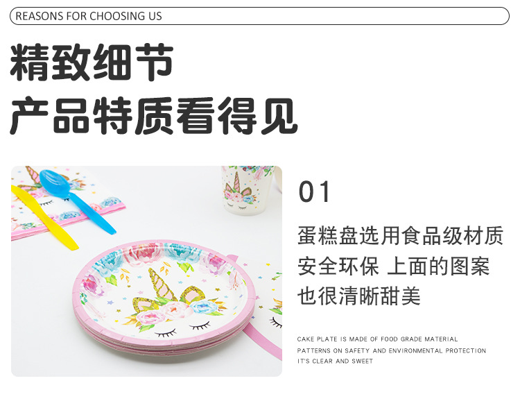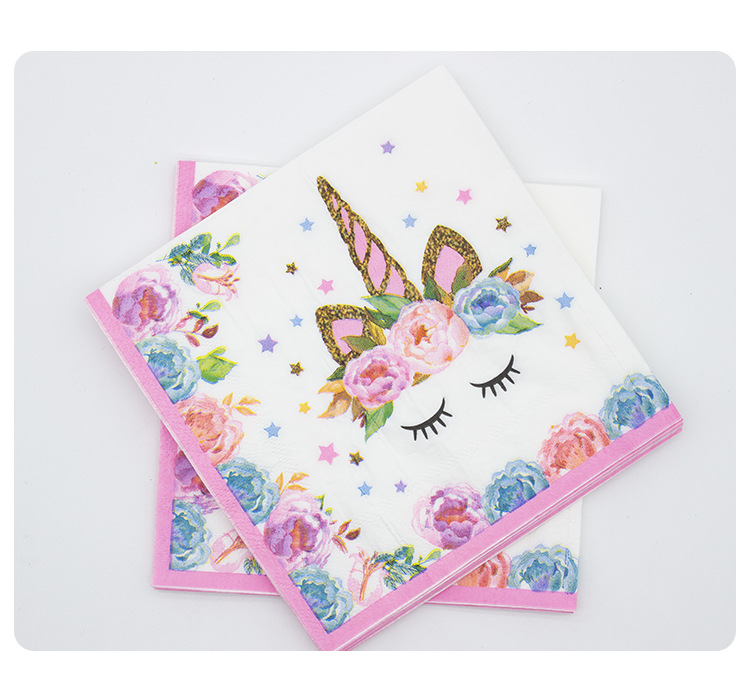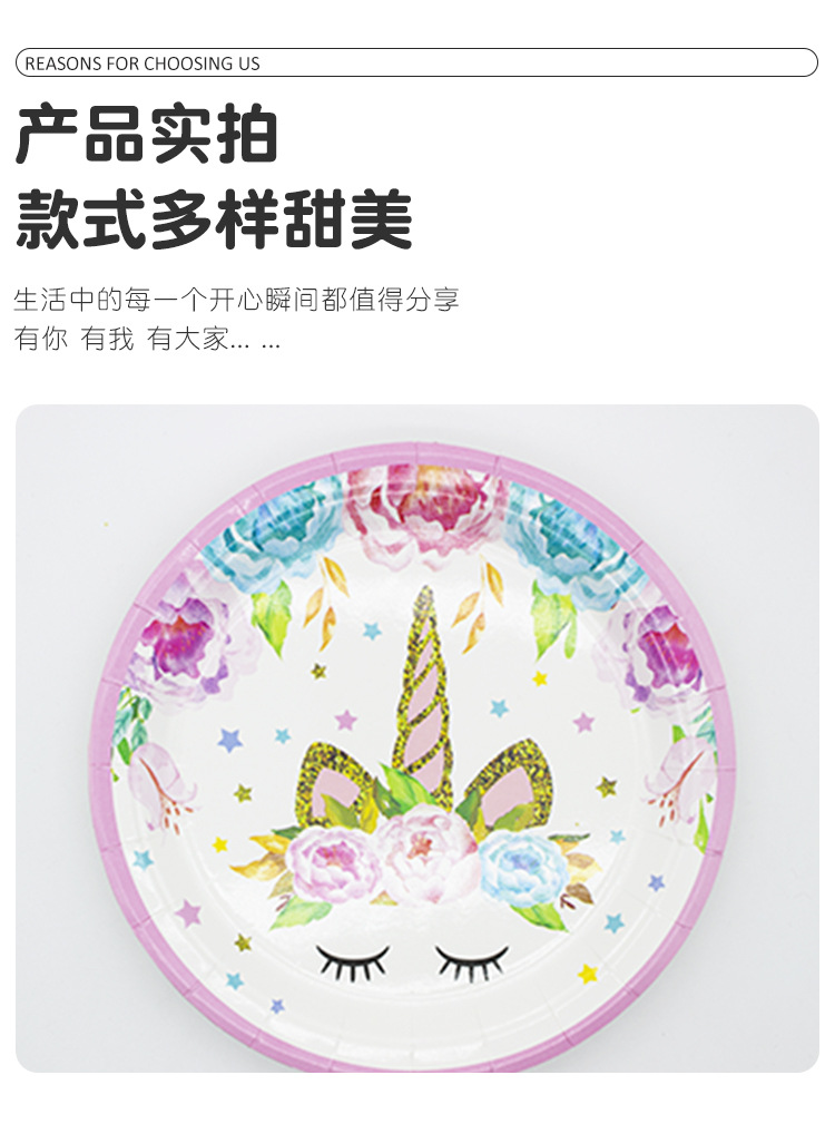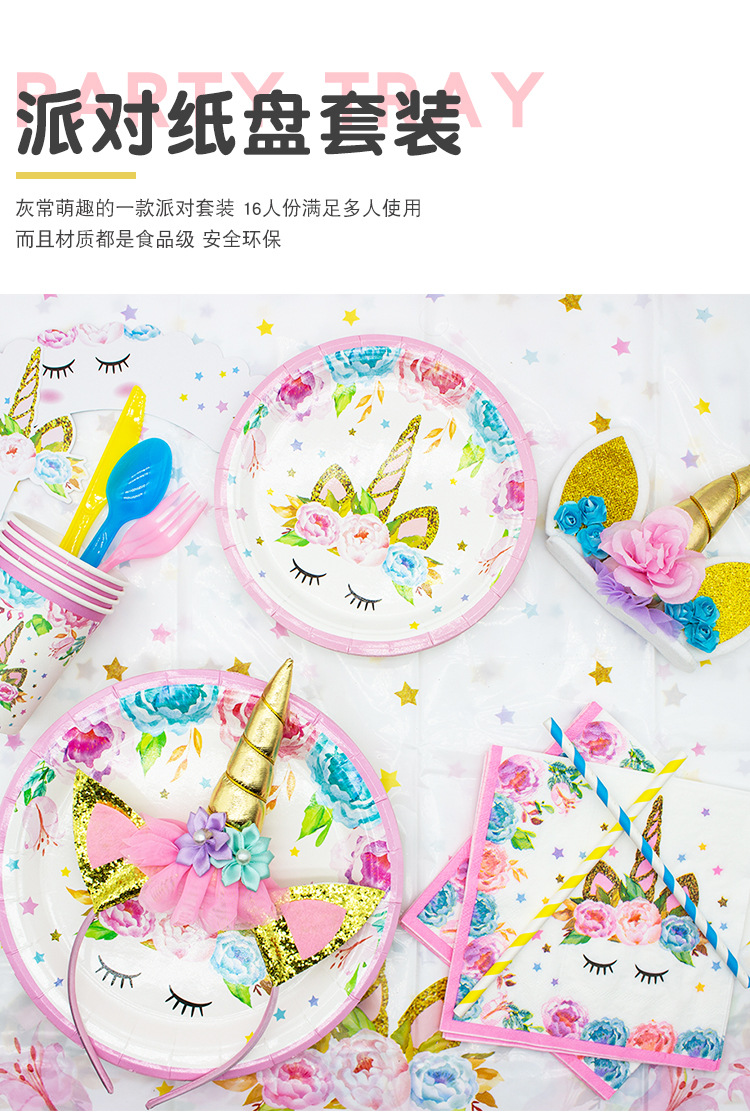 Juego de fiesta de unicornio Vajilla de fiesta de cumpleaños para niños Bandeja de papel desechable, taza de papel, mantel de toalla de papel