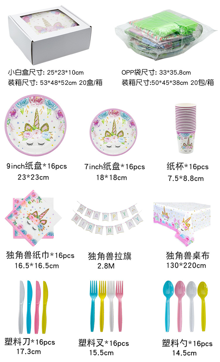 | Colores | Juego de 9 piezas (bolsa OPP),Juego de 9 piezas (bolsa de caja blanca),Disco de 16*9 pulgadas,Disco de 16*7 pulgadas,16 * vasos de papel,16 * toallas de papel,Banner HP * 1,Espolvorear bandera de cumpleaños,Cuchillo de plástico rosa * 16,Horquilla de plástico rosa * 16,Cuchara de plástico rosa * 16,Dragón soplado de papel * 16,Bolsa de papel * 16,Caleidoscopio de palomitas de maíz * 16,Pajita de papel de 16*4 colores pequeño punto de goma,Pajita rosa 16 *,Sombrero de papel * 16,Tarta de borde de pastel * 16,Tarjeta de invitación * 16,Bolsa de papel HP * 16,16 * bolsa de regalo,130*220 mantel,110*180 mantel,137*274 manteles,Cuchillo de color PS4 * 16,Horquilla de color PS4 * 16,Cuchara de color PS4 * 16,16 * Máscara (pelo aleatorio),Diadema de unicornio * 1,Correa de hombro * 1,Pajita de pestañas con decoración de pastel grande * 1,Juego de globos (5 lentejuelas, 5 polvos, 5 blancos),Globo de látex de unicornio blanco 10,Globo de látex de unicornio rosa 10,Globo de látex rosa unicornio * 10,Globo de látex blanco unicornio * 10,Disco de 9 pulgadas * 10,Disco de 7 pulgadas * 10,Taza de papel * 10,Toallas de papel * 10,Cuchillo de plástico rosa * 10,Tenedor de plástico rosa * 10,Cuchara de plástico rosa * 10,Dragón soplado de papel * 10,Bolsa de papel * 10,Caleidoscopio de palomitas de maíz * 10,Pajita de papel roscada rosa * 10,Tarjeta de pajita de papel rosa * 10,Sombrero de papel * 10,Tarta de borde de pastel * 10,Tarjeta de invitación * 10,Bolsa de regalo * 10,Máscara * 10,Juego de 4 piezas (tenedor de toalla de papel de 9 pulgadas y 7 pulgadas) para 24 personas |