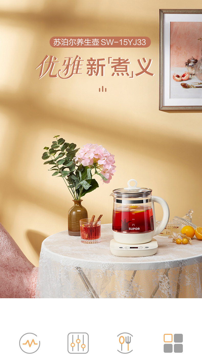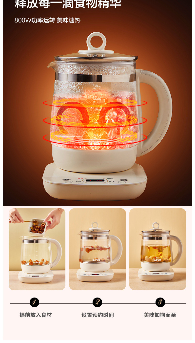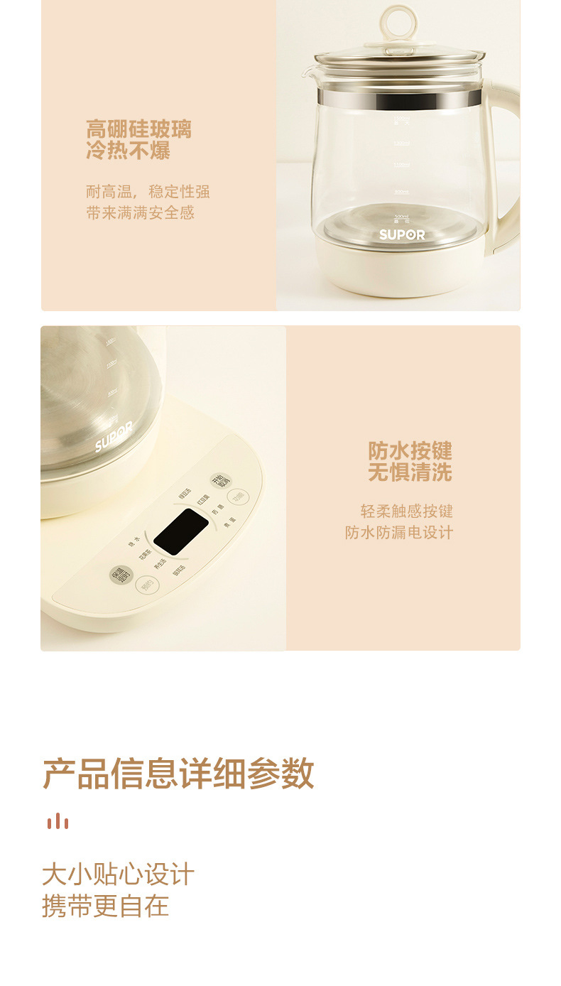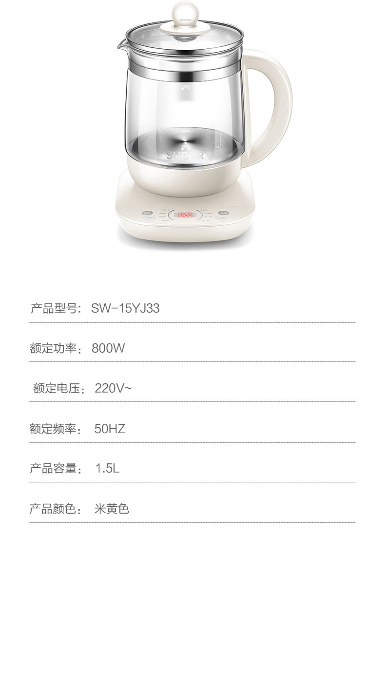 Supor salud olla hogar multi-funcional de vidrio automático cocina de té pequeño Hervidor eléctrico SW-15YJ33