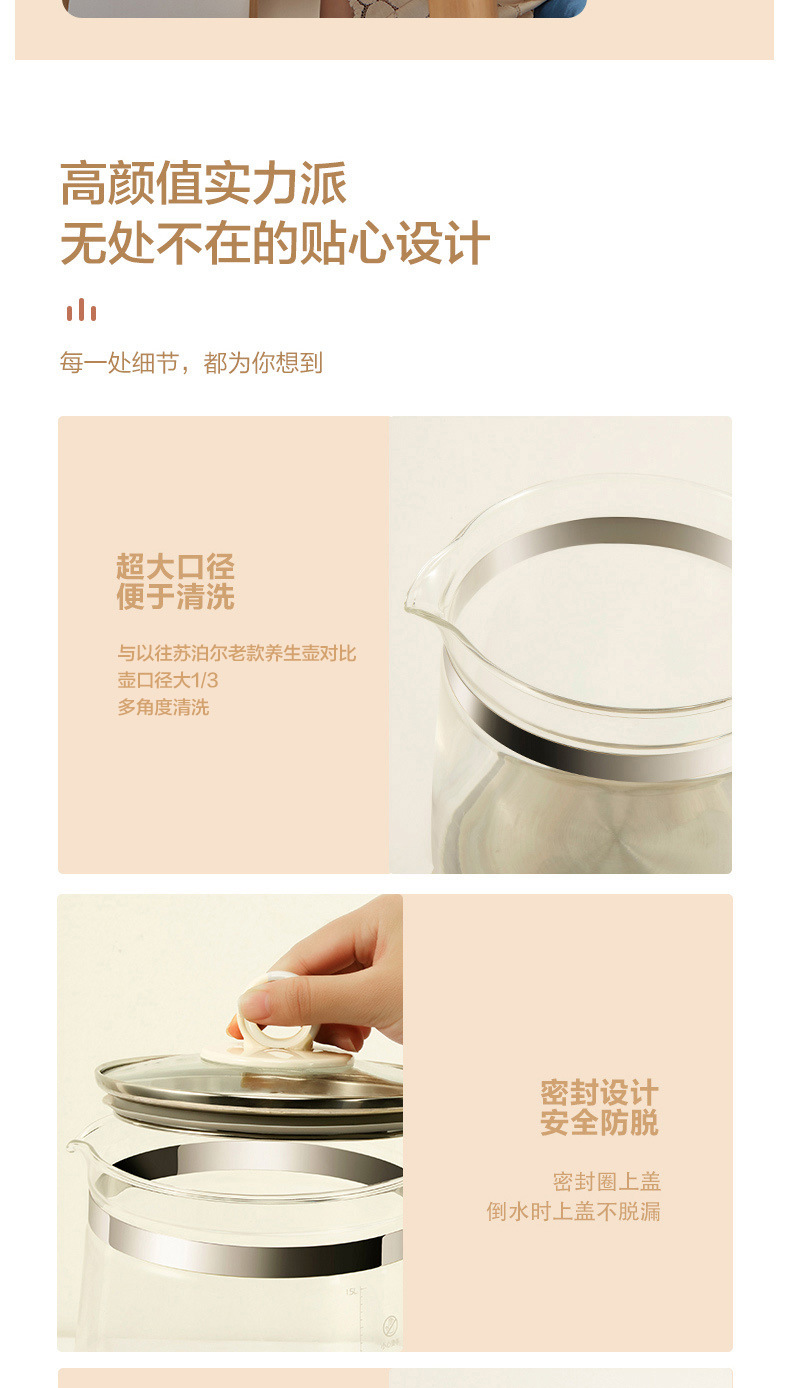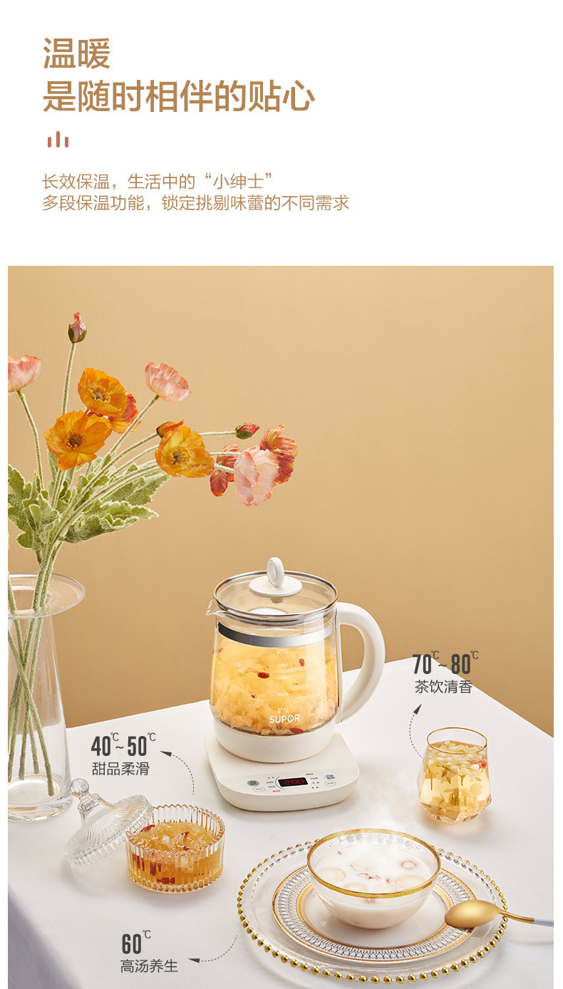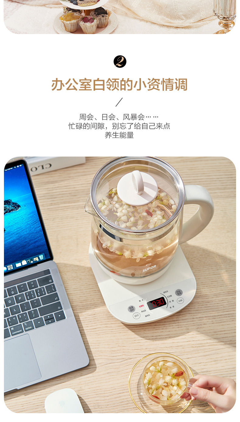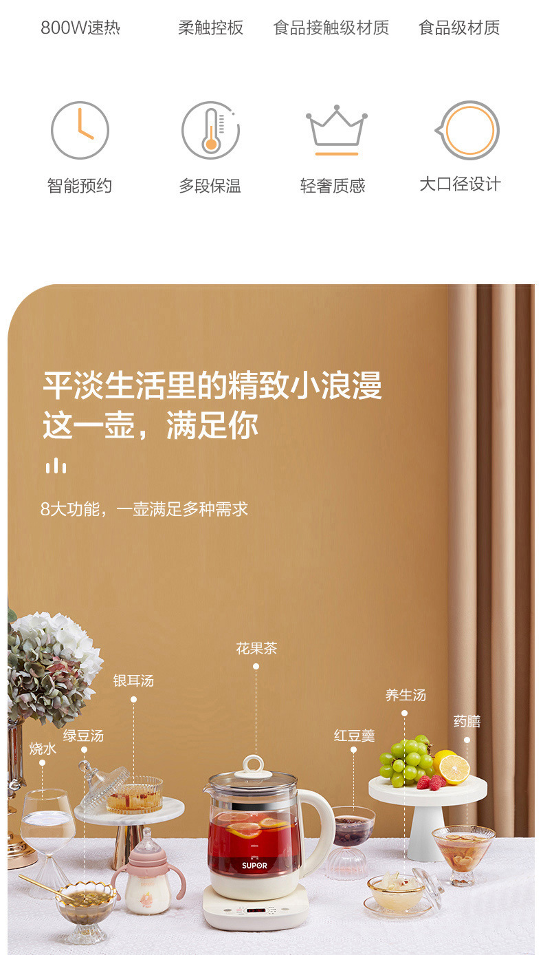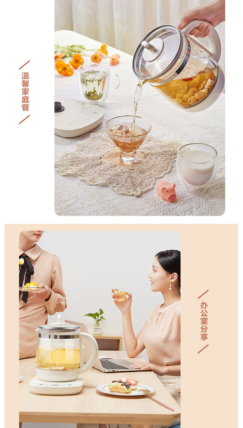 Supor salud olla hogar multi-funcional de vidrio automático cocina de té pequeño Hervidor eléctrico SW-15YJ33