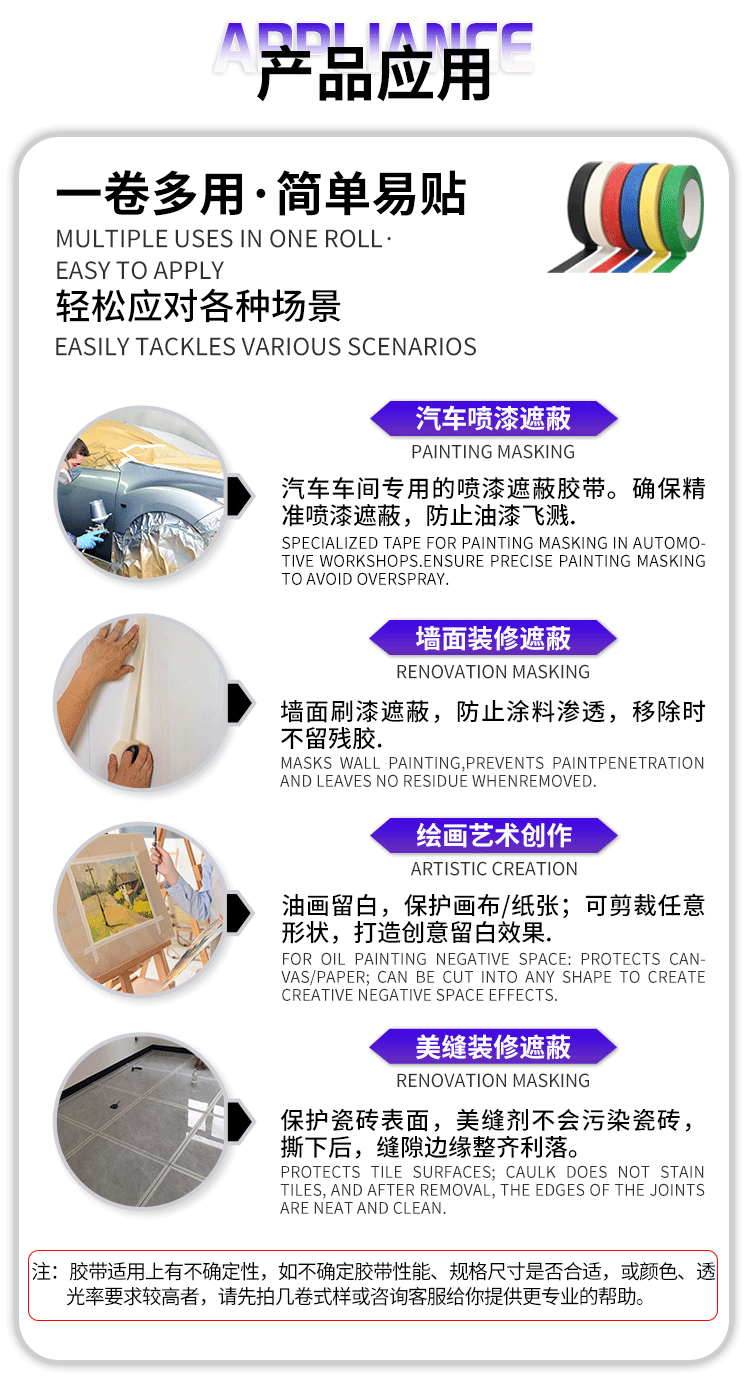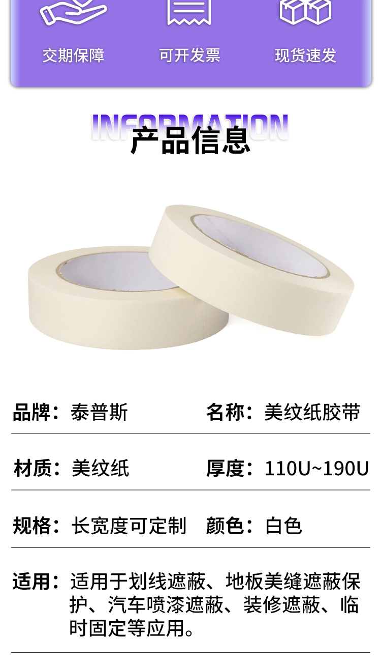Fábrica al por mayor blanco amarillo llano decoración pintura en aerosol pintura de arte hermosa costura separación de color cinta de papel enmascarador