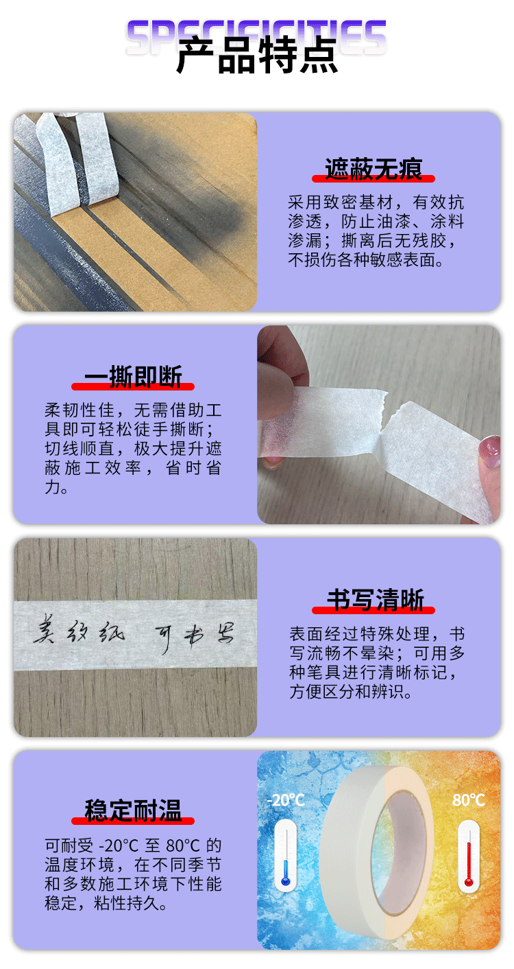 Modelo de especificaciónBlanco medio pegajoso; 8mm * 50m(444 rollos/caja),Blanco medio pegajoso; 10mm * 50m(360 rollos/caja),Blanco medio pegajoso; 12mm * 50m(300 rollos/caja),Blanco medio pegajoso; 15mm * 50m(240 rollos/caja),Blanco medio pegajoso; 18mm * 50m(204 rollos/caja),Blanco medio pegajoso; 20mm * 50m(180 rollos/caja),Blanco medio pegajoso; 25mm * 50m(144 rollos/caja),Blanco medio pegajoso; 30mm * 50m(120 rollos/caja),Blanco medio pegajoso; 36mm * 50m(96 rollos/caja),Blanco medio pegajoso; 40mm * 50m(84 rollos/caja),Blanco medio pegajoso; 50mm * 50m(72 rollos/caja),Blanco medio pegajoso; 60mm * 50m(60 rollos/caja),Blanco medio pegajoso; 80mm * 50m(48 rollos/caja),Blanco medio pegajoso; 100mm * 50m(36 rollos/caja),Blanco medio pegajoso; 120mm * 50m(36 rollos/caja),Blanco medio pegajoso; 150mm * 50m(24 rollos/caja),Blanco medio pegajoso; 200mm * 50m(18 rollos/caja),Blanco medio pegajoso; 300mm * 50m(12 rollos/caja,Amarillo de alta viscosidad; 8mm * 50m(444 rollos/caja),Amarillo de alta viscosidad; 10mm * 50m(360 rollos/caja),Amarillo de alta viscosidad; 12mm * 50m(300 rollos/caja),Amarillo de alta viscosidad; 15mm * 50m(240 rollos/caja),Amarillo de alta viscosidad; 18mm * 50m(204 rollos/caja),Amarillo de alta viscosidad; 20mm * 50m(180 rollos/caja),Amarillo de alta viscosidad; 25mm * 50m(144 rollos/caja),Amarillo de alta viscosidad; 30mm * 50m(120 rollos/caja),Amarillo de alta viscosidad; 36mm * 50m(96 rollos/caja),Amarillo de alta viscosidad; 40mm * 50m(84 rollos/caja),Amarillo de alta viscosidad; 50mm * 50m(72 rollos/caja),Amarillo de alta viscosidad; 60mm * 50m(60 rollos/caja),Amarillo de alta viscosidad; 80mm * 50m(48 rollos/caja),Amarillo de alta viscosidad; 100mm * 50m(36 rollos/caja),Amarillo de alta viscosidad; 120mm * 50m(36 rollos/caja),Amarillo de alta viscosidad; 150mm * 50m(24 rollos/caja),Amarillo de alta viscosidad; 200mm * 50m(18 rollos/caja),Amarillo de alta viscosidad; 300mm * 50m(12 rollos/caja