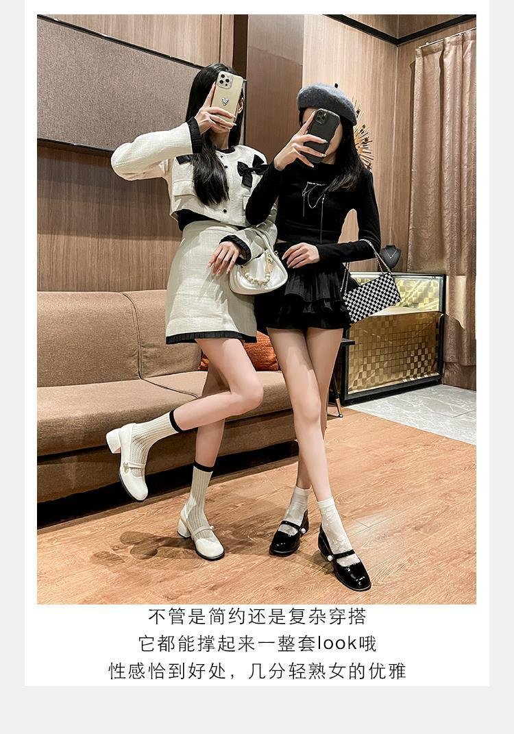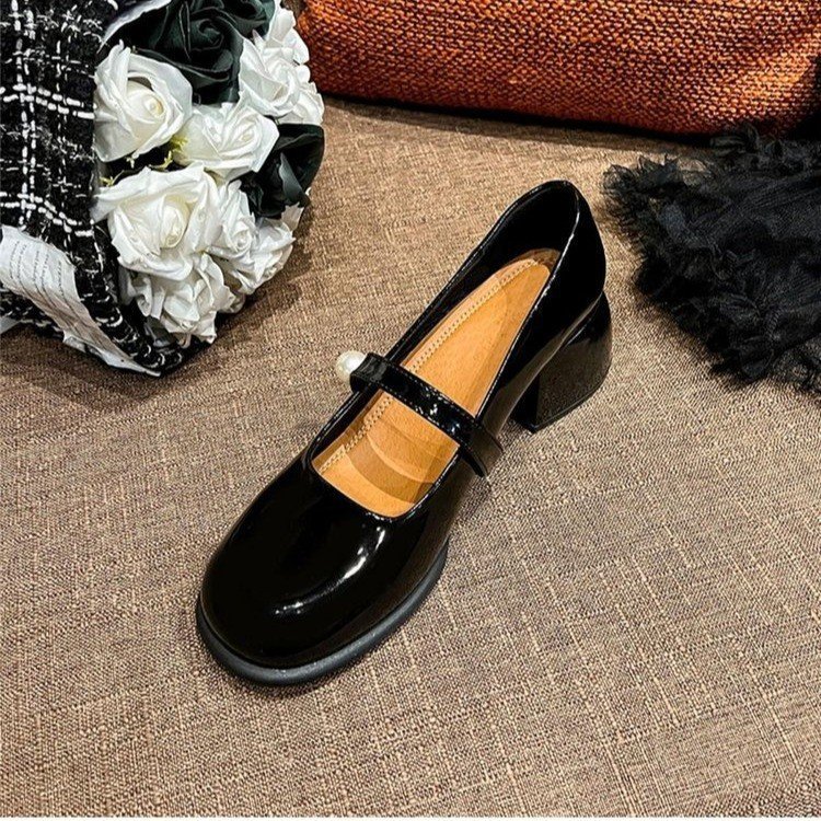 Estilo francés tacón grueso Mary Jane zapatos de cuero 2023 otoño nueva moda JK zapatos punta redonda mediados talón zapatos de una sola capa
