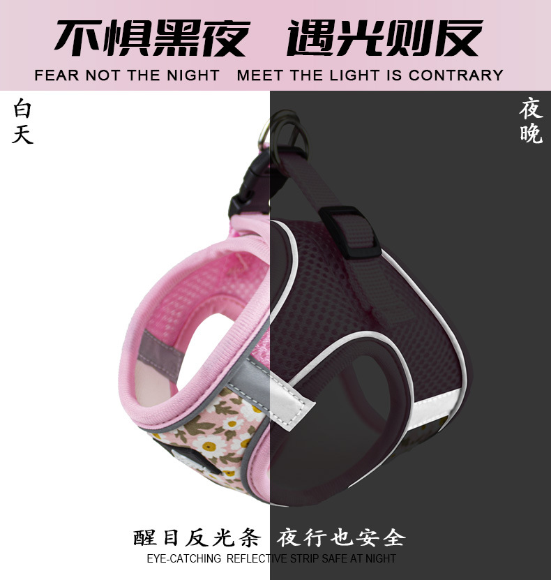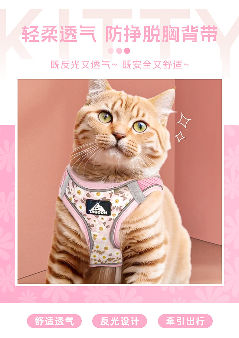 Verano transpirable gato correa de tracción tipo chaleco anti-liberación gato mascota correa de pecho reflectante correa de gato al por mayor