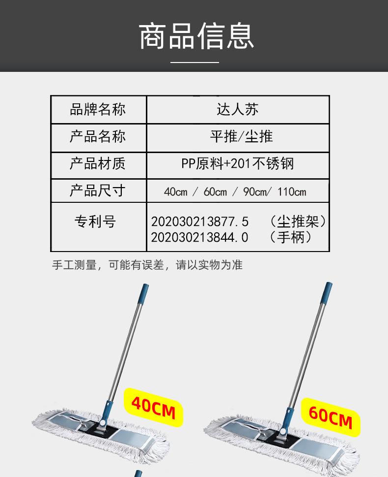 Fregona plana fregona de polvo fila fregona comercial mango grande ensanchado espesado largo industrial 60 piso fregona 90 110cm