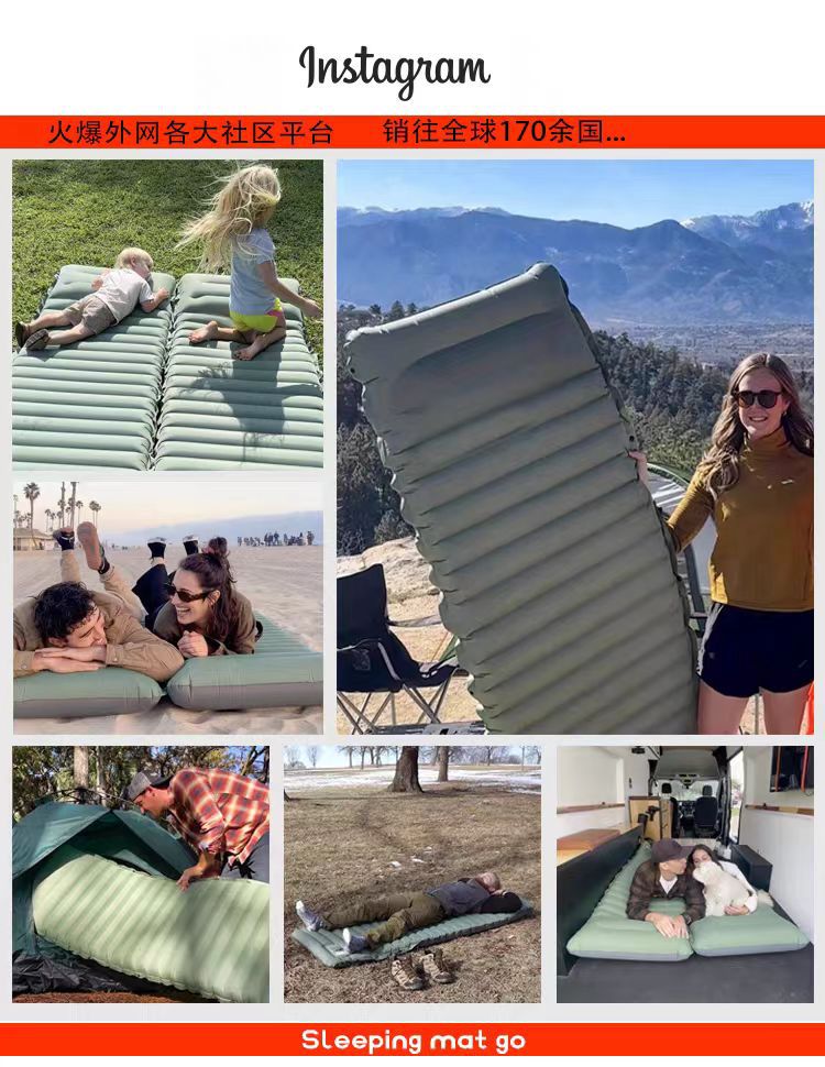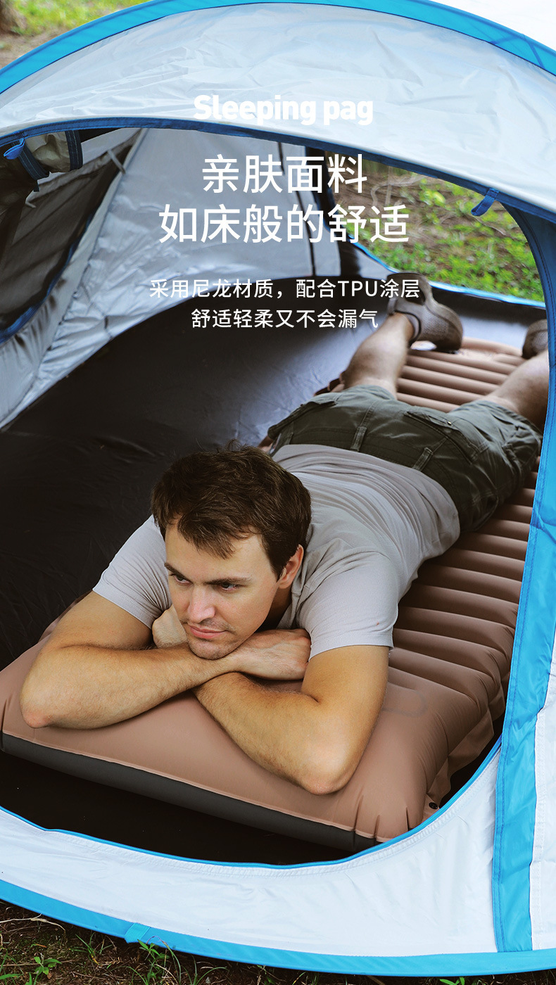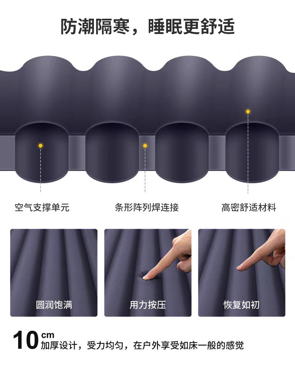 Colchoneta de camping de 10 cm de grosor, impermeable, plegable, colchón de aire inflable para exteriores, con almacenamiento, accionado con el pie.