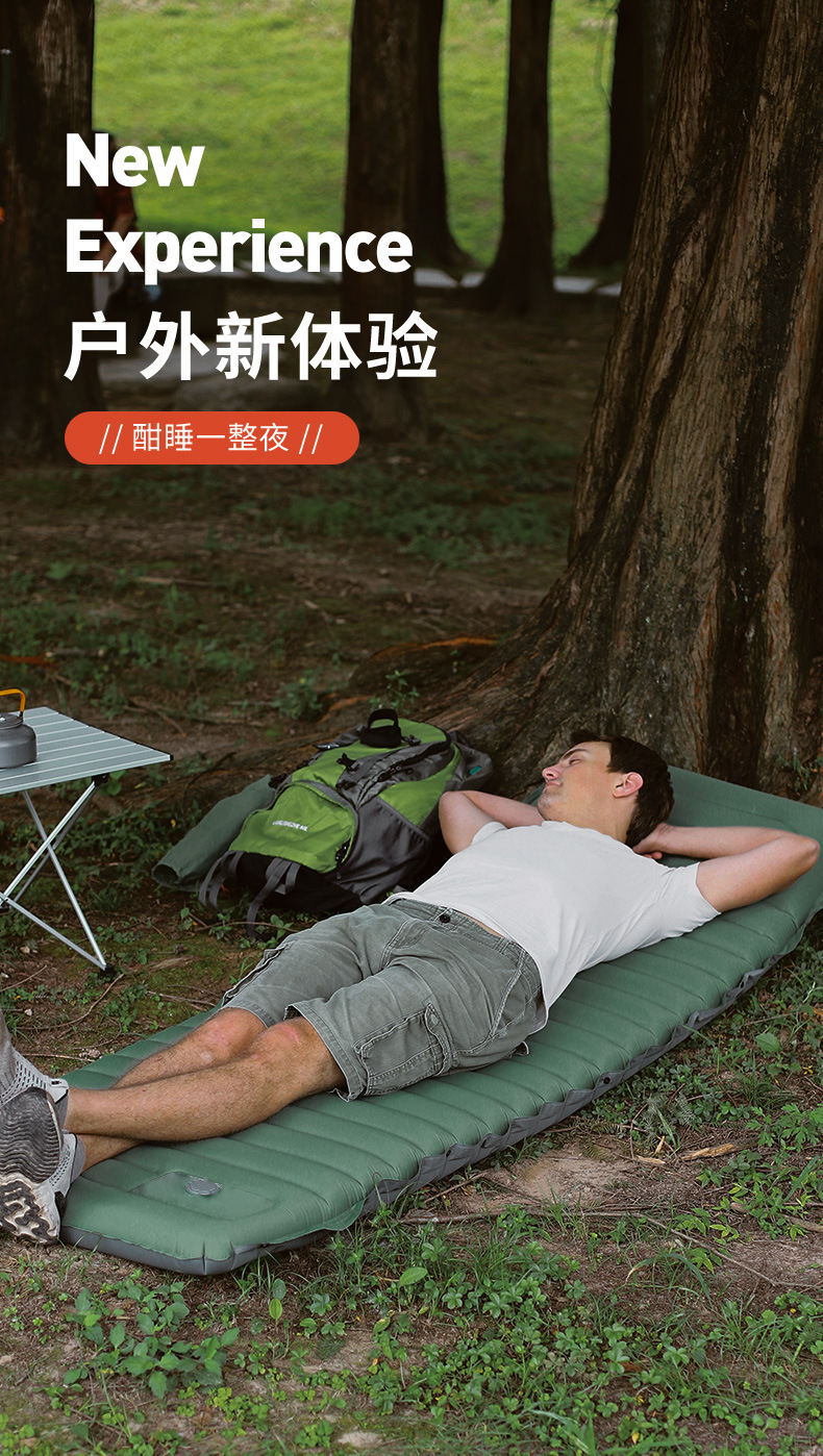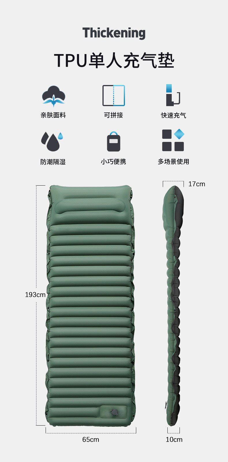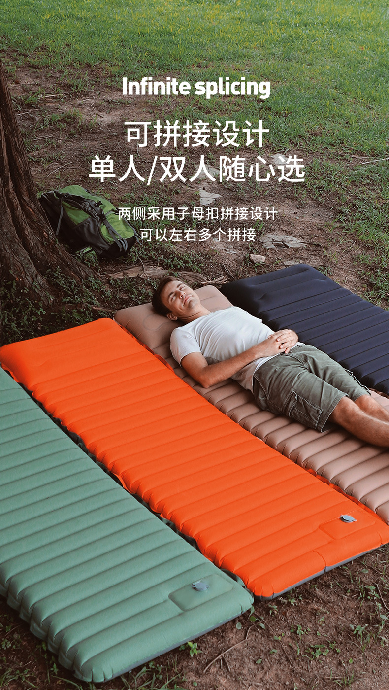 Colchoneta de camping de 10 cm de grosor, impermeable, plegable, colchón de aire inflable para exteriores, con almacenamiento, accionado con el pie.