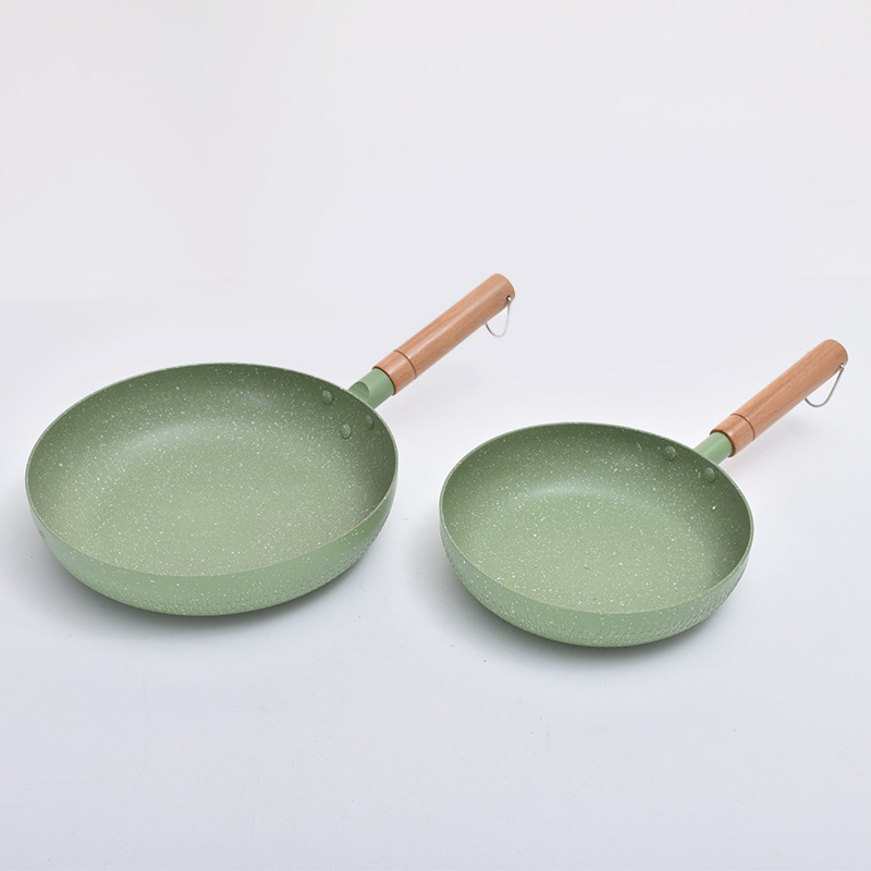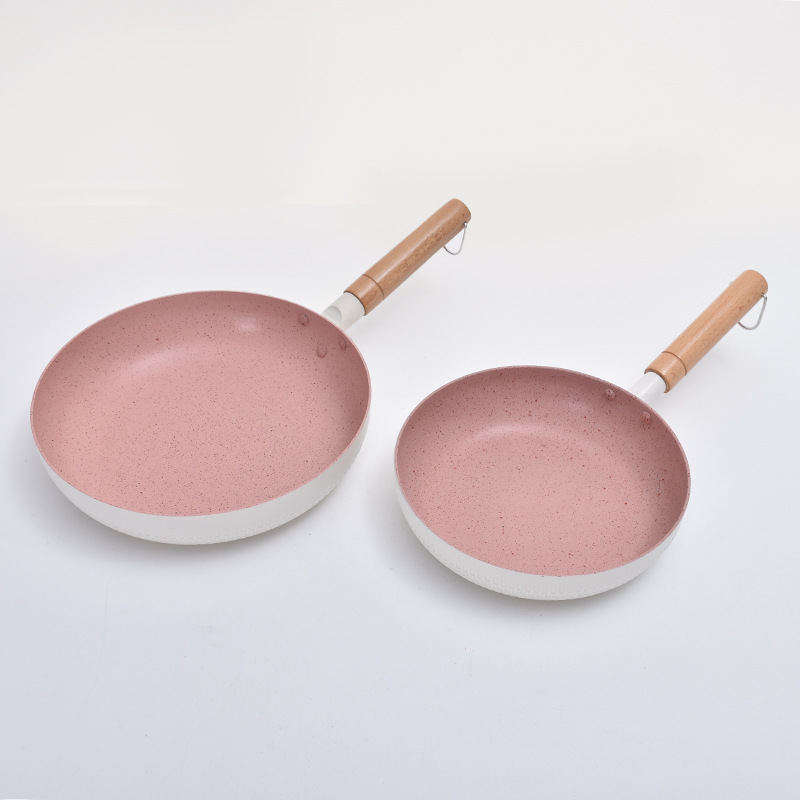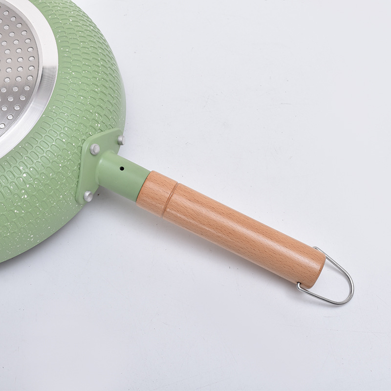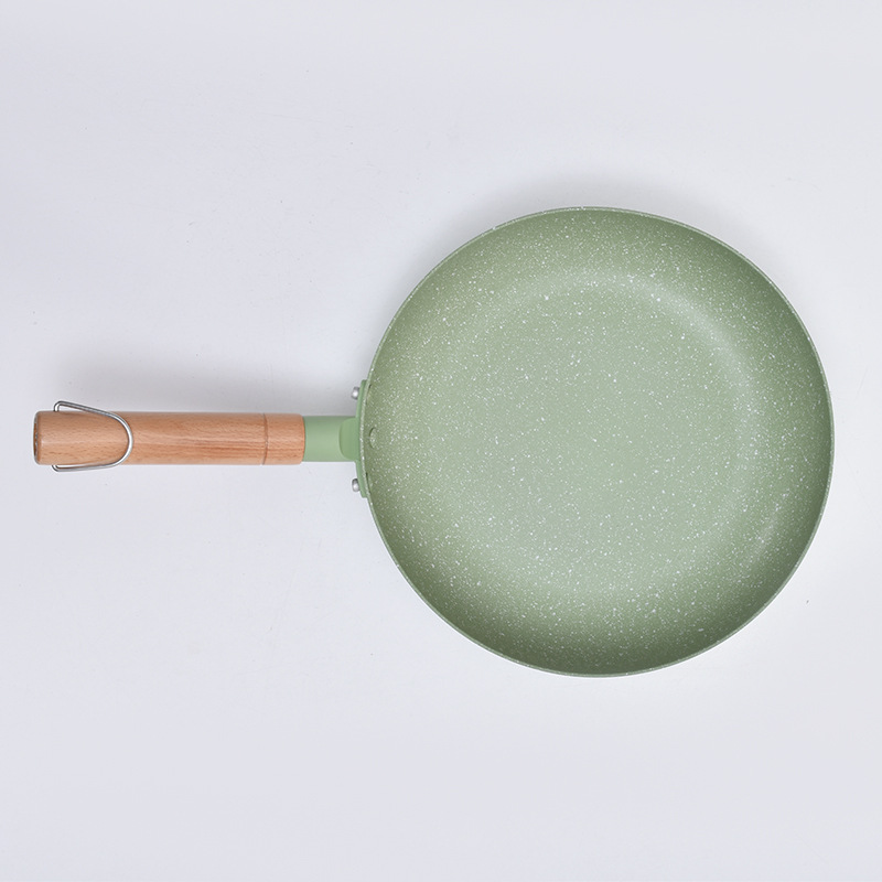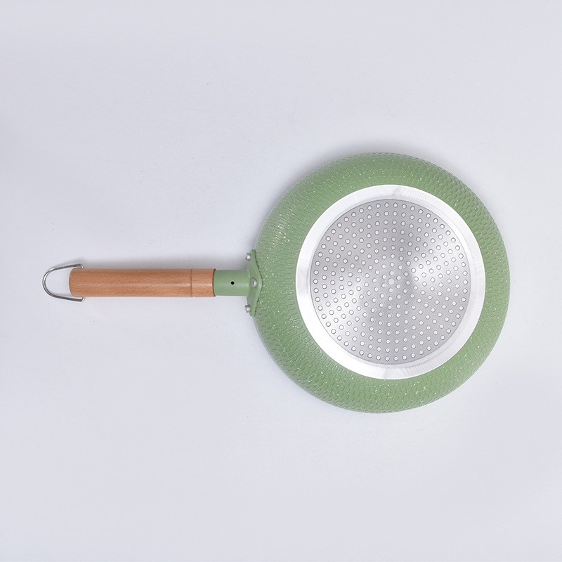 Creativo mango de madera de aluminio sartén cocina de inducción pan universal hogar comida complementaria huevo frito sartén al por mayor