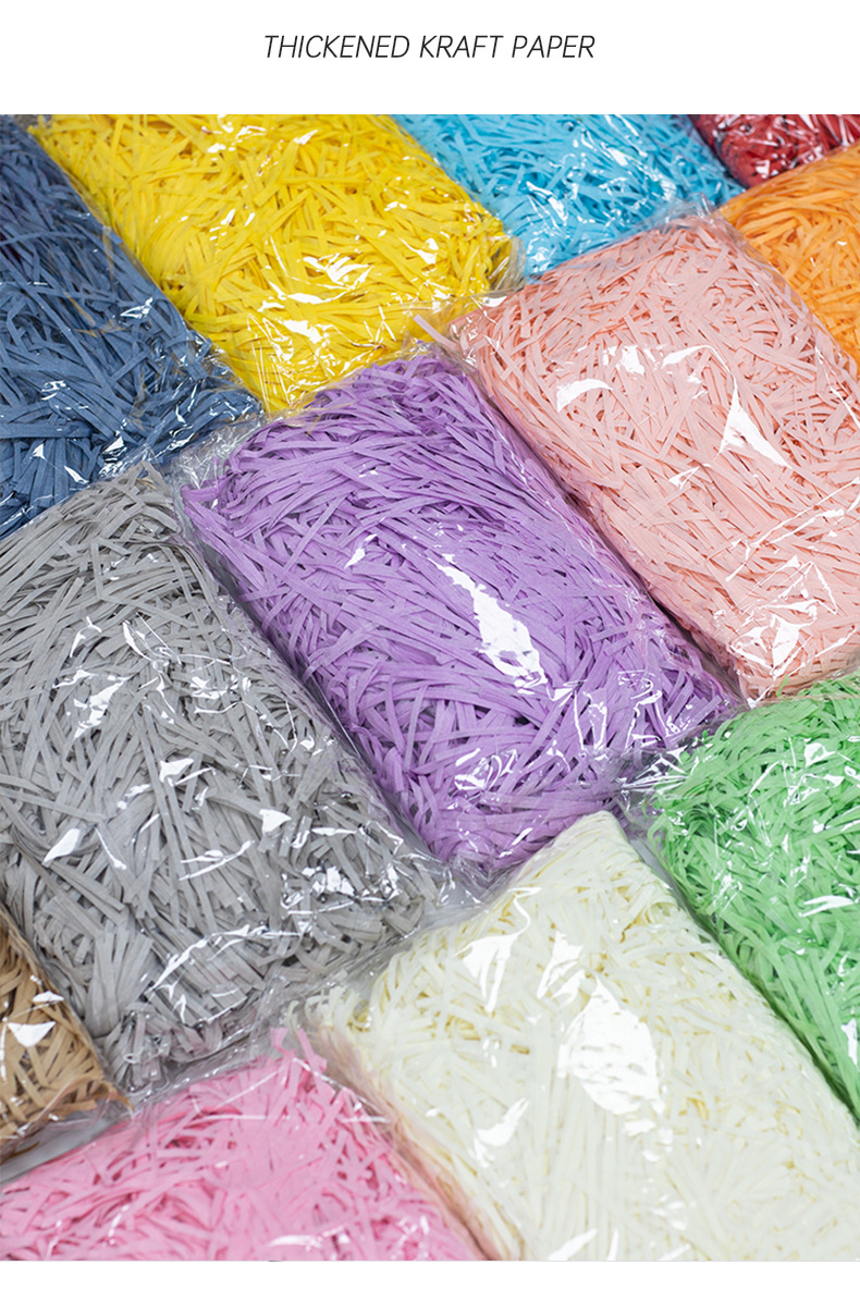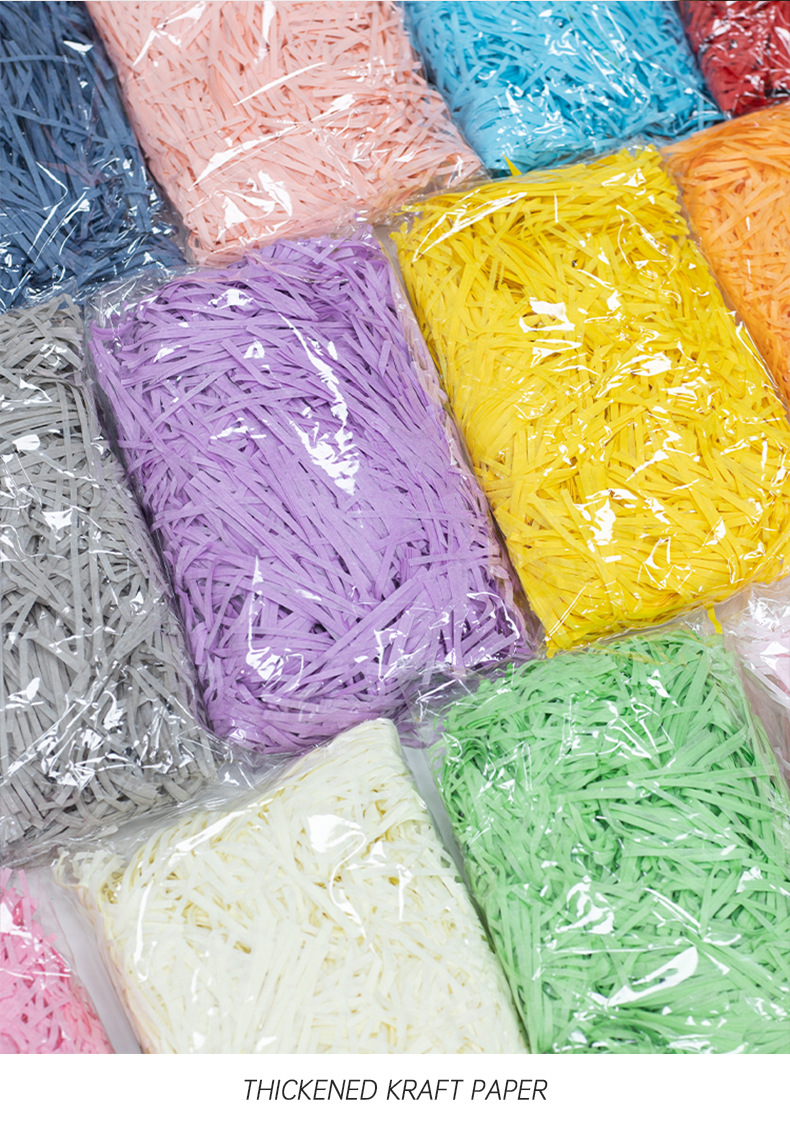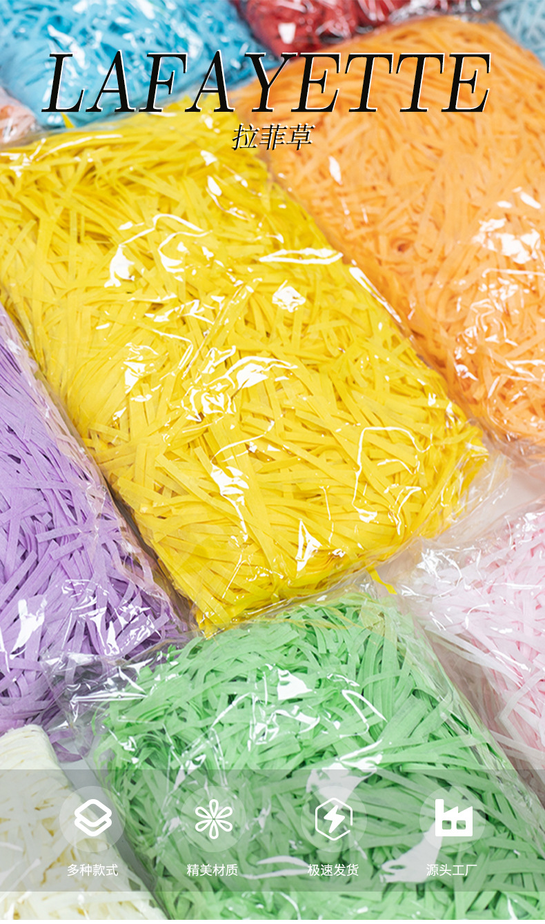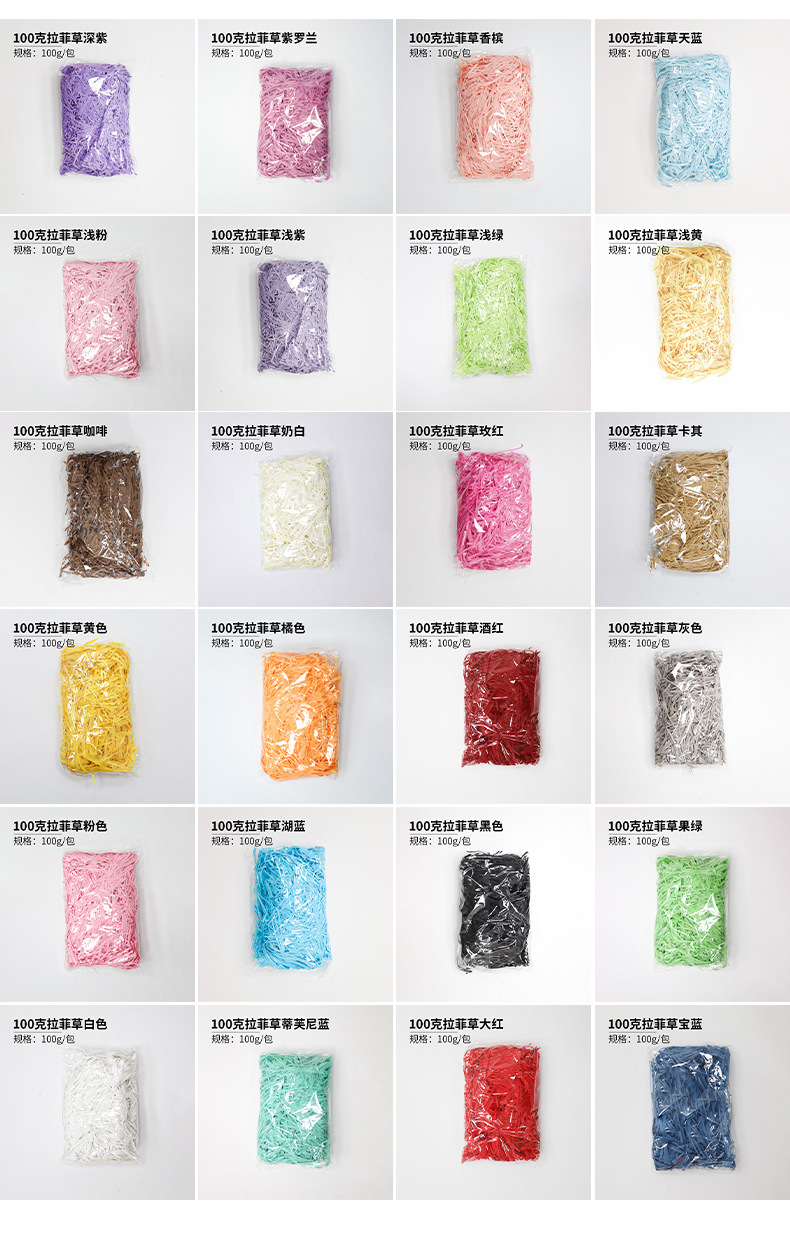 Rafia de 100g, fabricante mayorista, para decoración de cajas de regalo de boda, regalos de cumpleaños, relleno de papel triturado, seda, hierba para manualidades florales