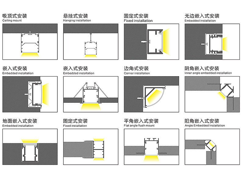 Perfil de aluminio para tiras de luz LED, carcasa lineal para iluminación, línea de zócalo luminosa, perfil de aluminio oculto para zócalo, kit de perfil de aluminio