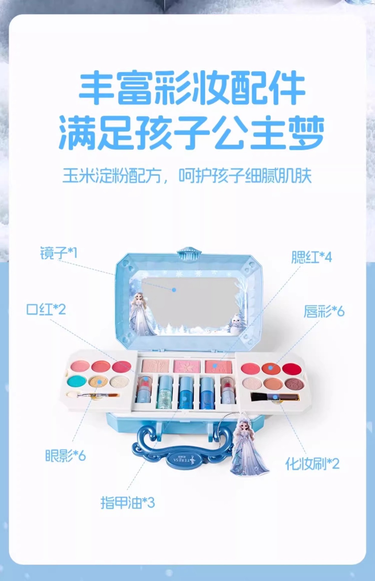 Set de Cosméticos Infantiles Dulisa, Caja de Maquillaje de Princesa Elsa de Hielo y Nieve, Juguete de Lápiz Labial para Niñas, Princesa de Hielo y Nieve