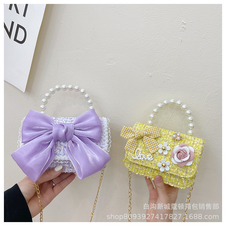 Nueva moda para niños estilo chanel princesa aisha bolsa de niña perla bolsa de mensajero portátil red del teléfono móvil bolsa roja