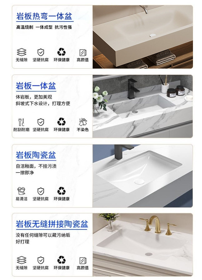 80cm Placa de roca integrada cuenca oculta agua + espejo inteligente gabinete