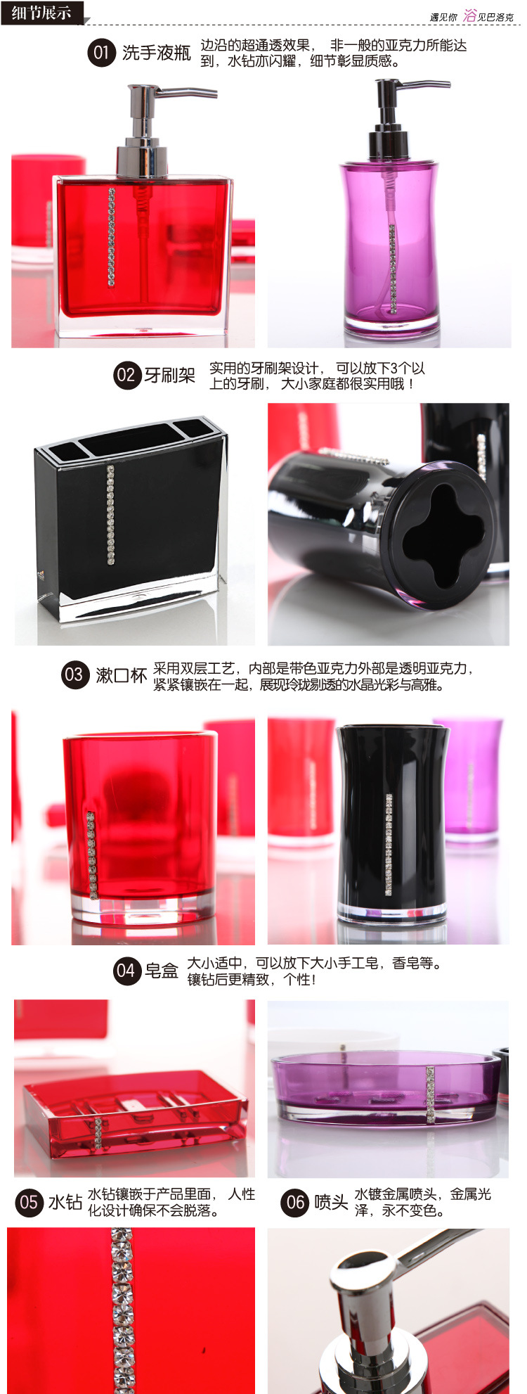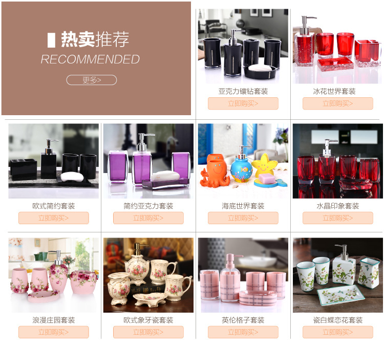 Traje de baño conjunto de cinco piezas de cuatro colores europeo simple regalo de boda creativo acrílico baño lavado conjunto de artículos sanitarios