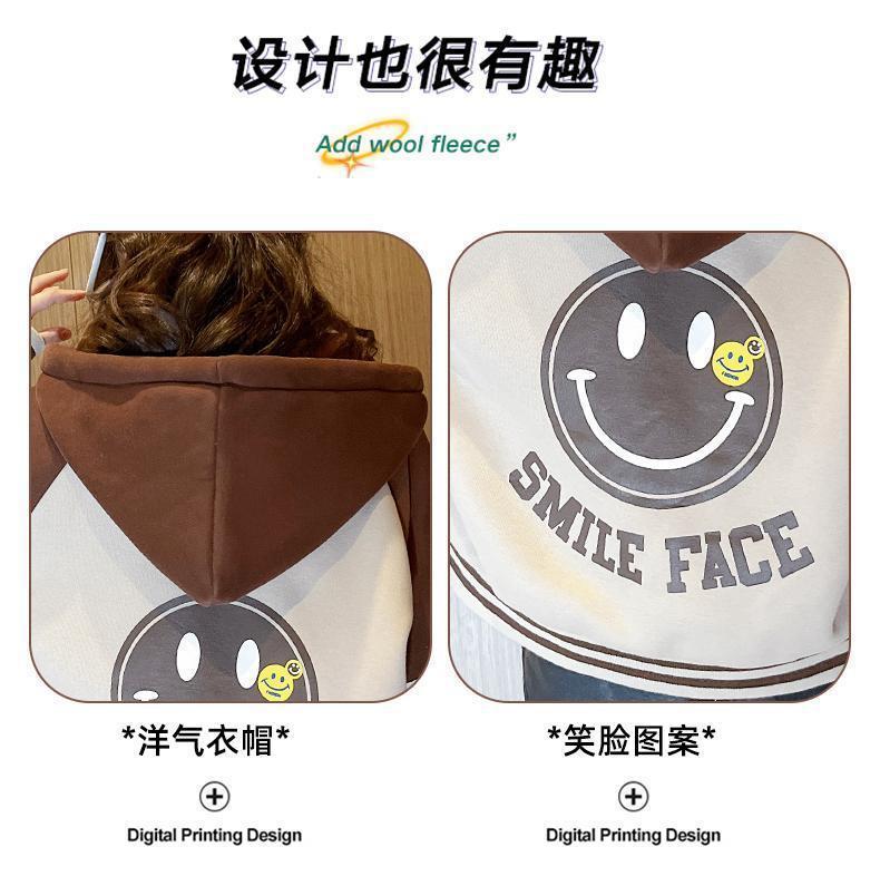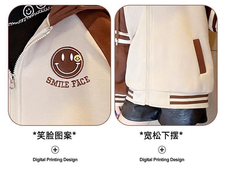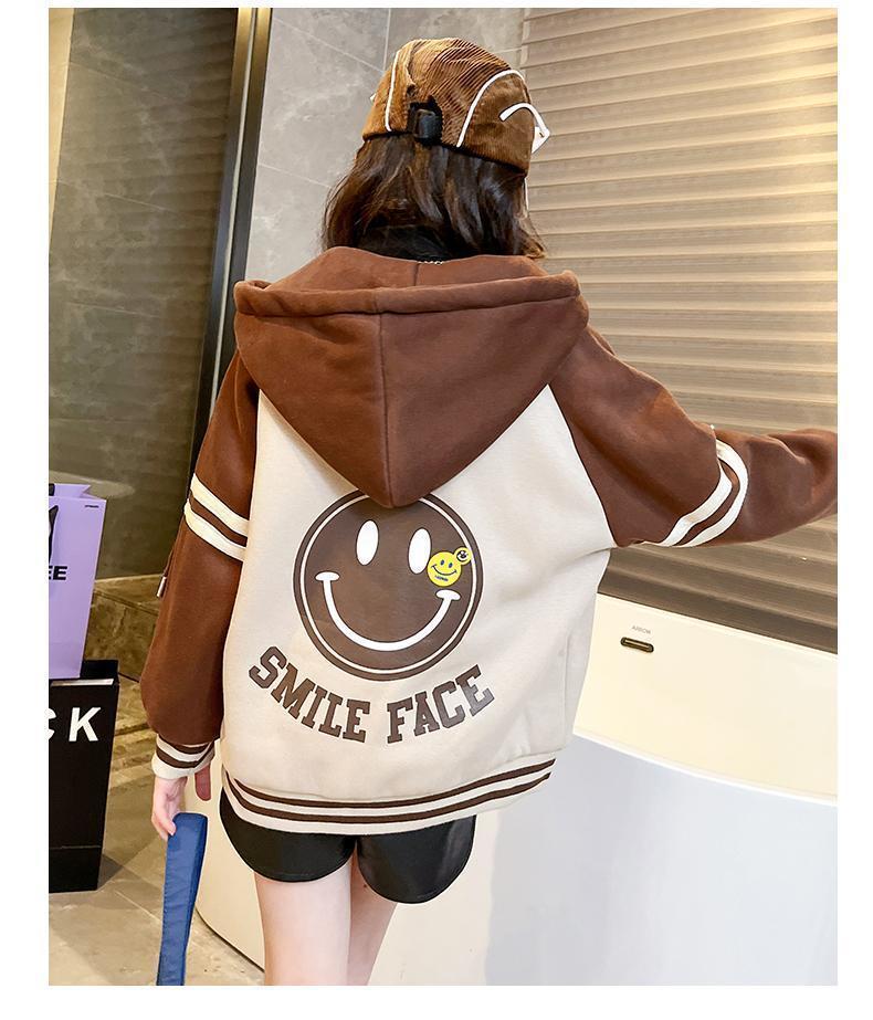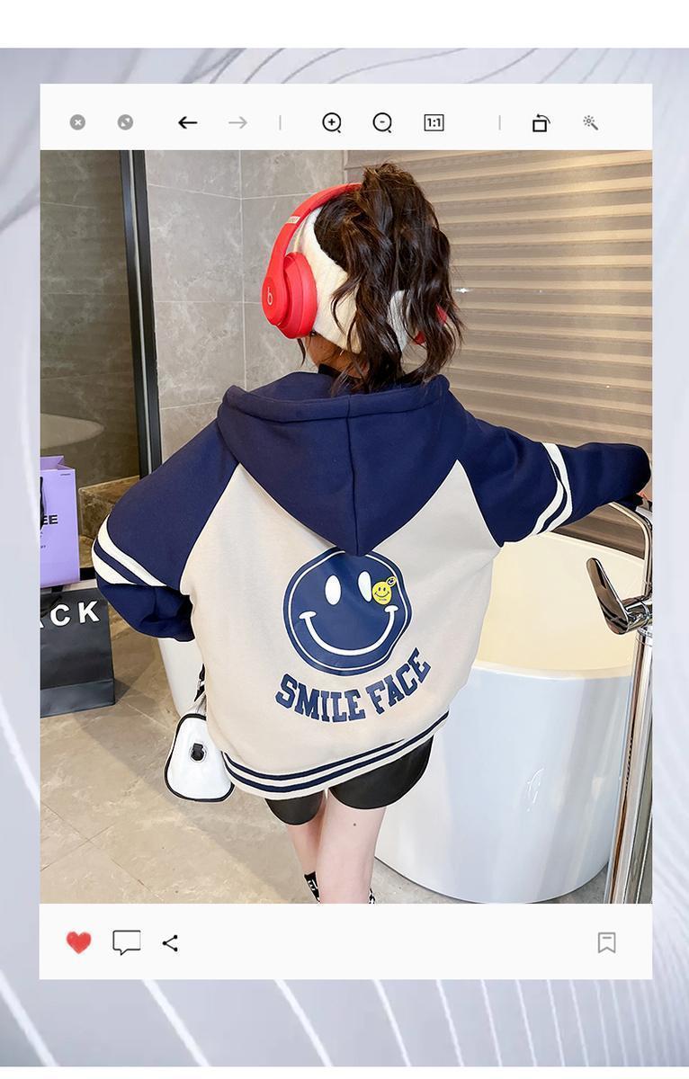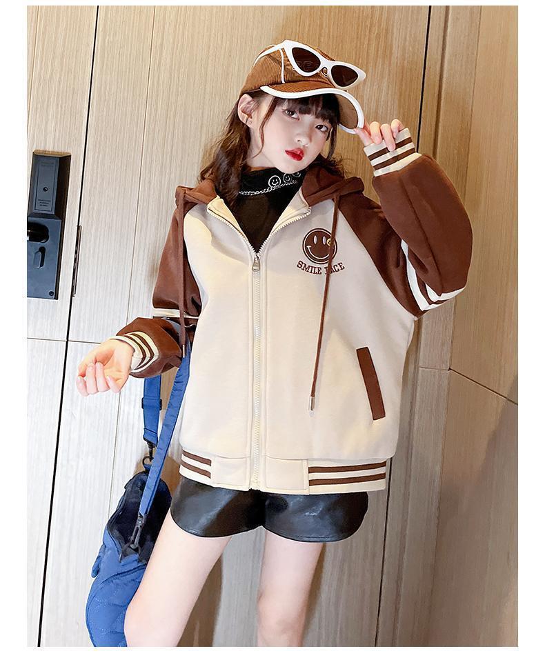 Abrigo de las niñas forrado de vellón engrosado Otoño e Invierno suéter con capucha uniforme de béisbol medio y grande niños estilo occidental niñas cardigan top