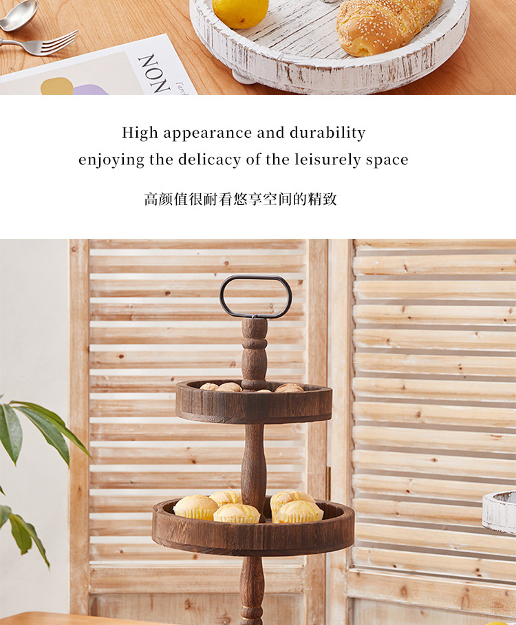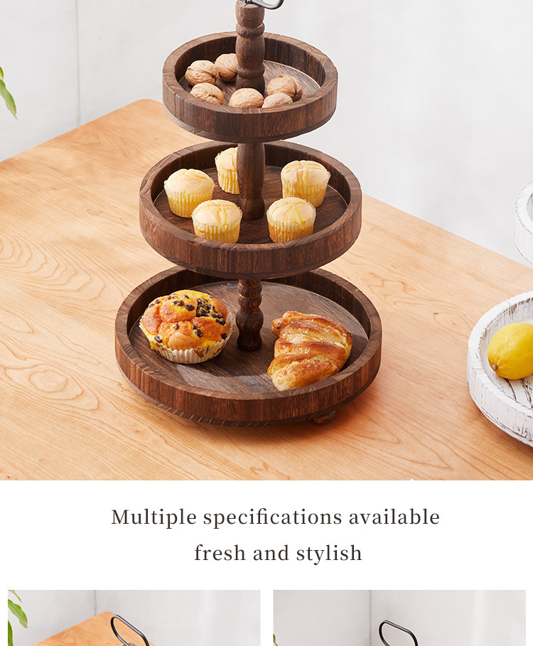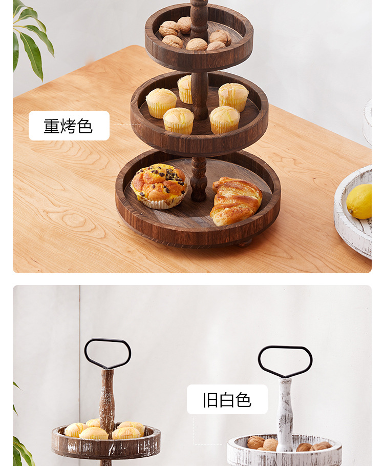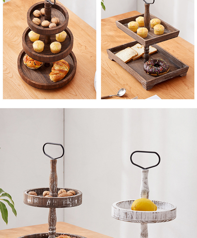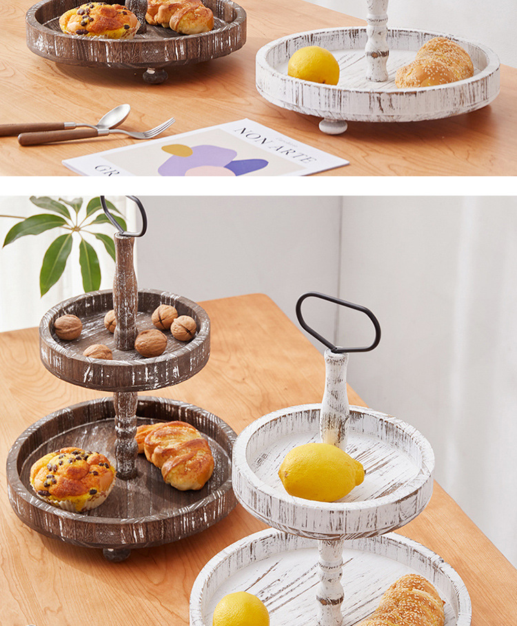 Cruzar la frontera de madera retro de múltiples capas merienda soporte plato de fruta pastel de frutas secas de múltiples capas bandeja de hogar soporte de postre soporte de exhibición