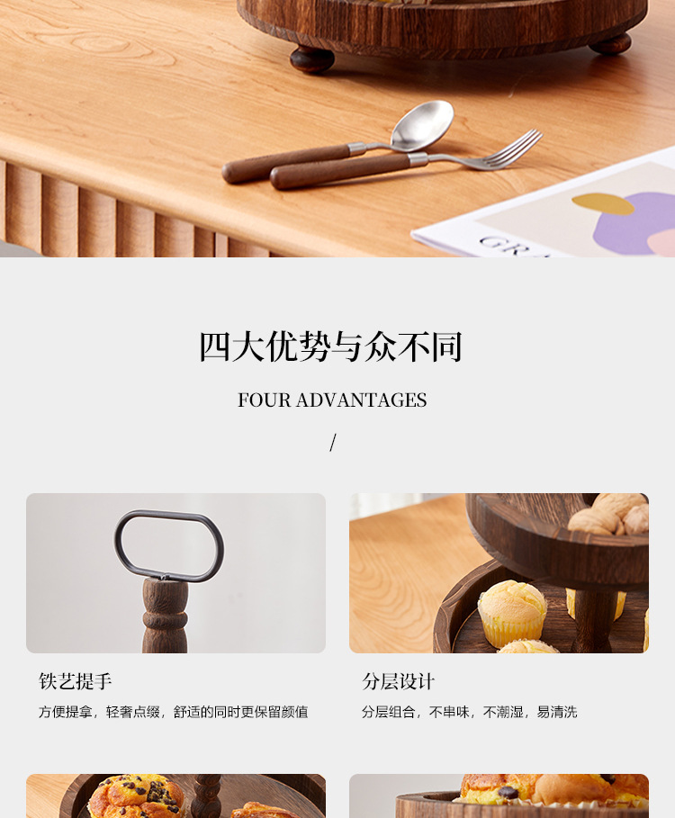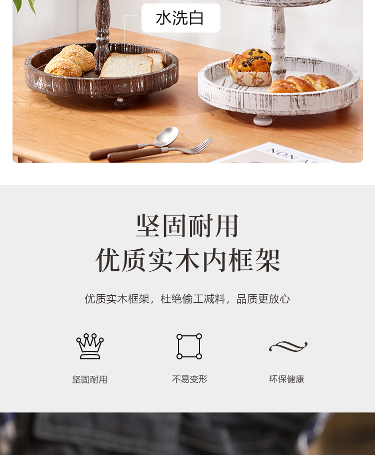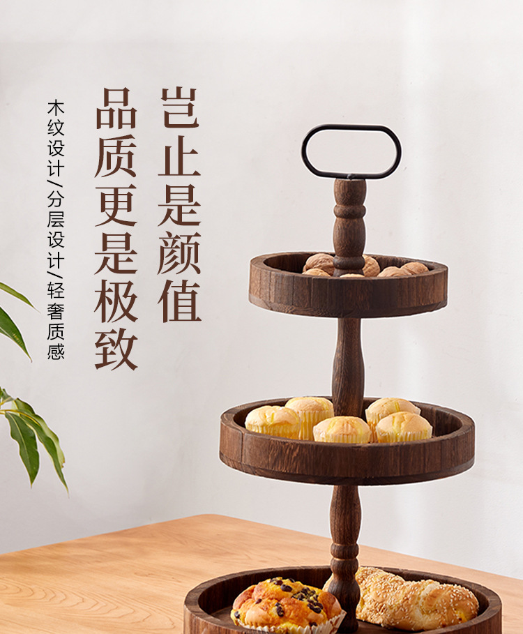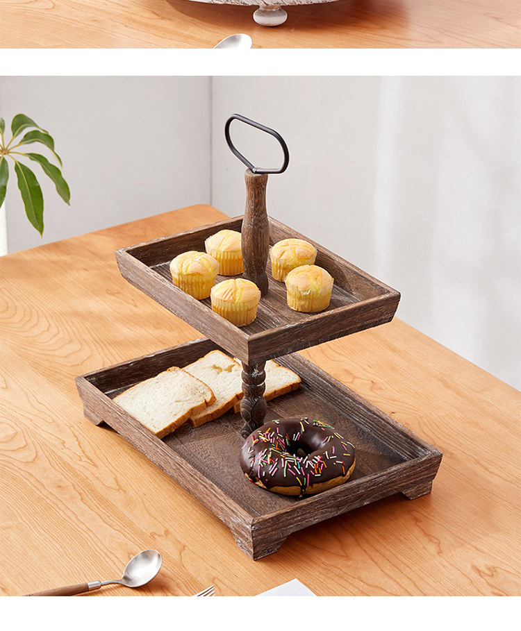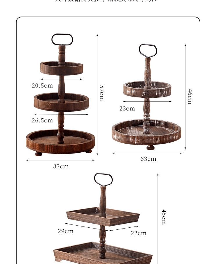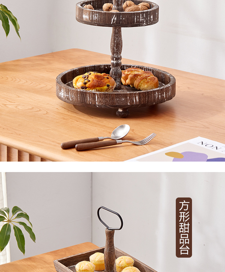 Cruzar la frontera de madera retro de múltiples capas merienda soporte plato de fruta pastel de frutas secas de múltiples capas bandeja de hogar soporte de postre soporte de exhibición