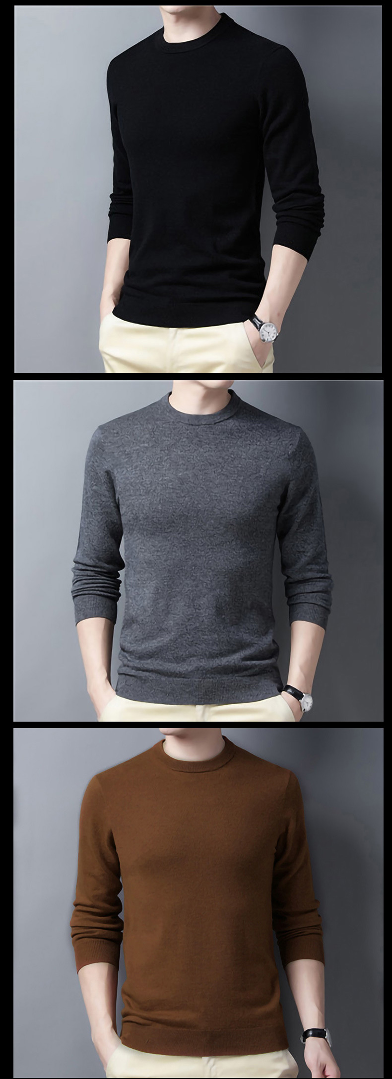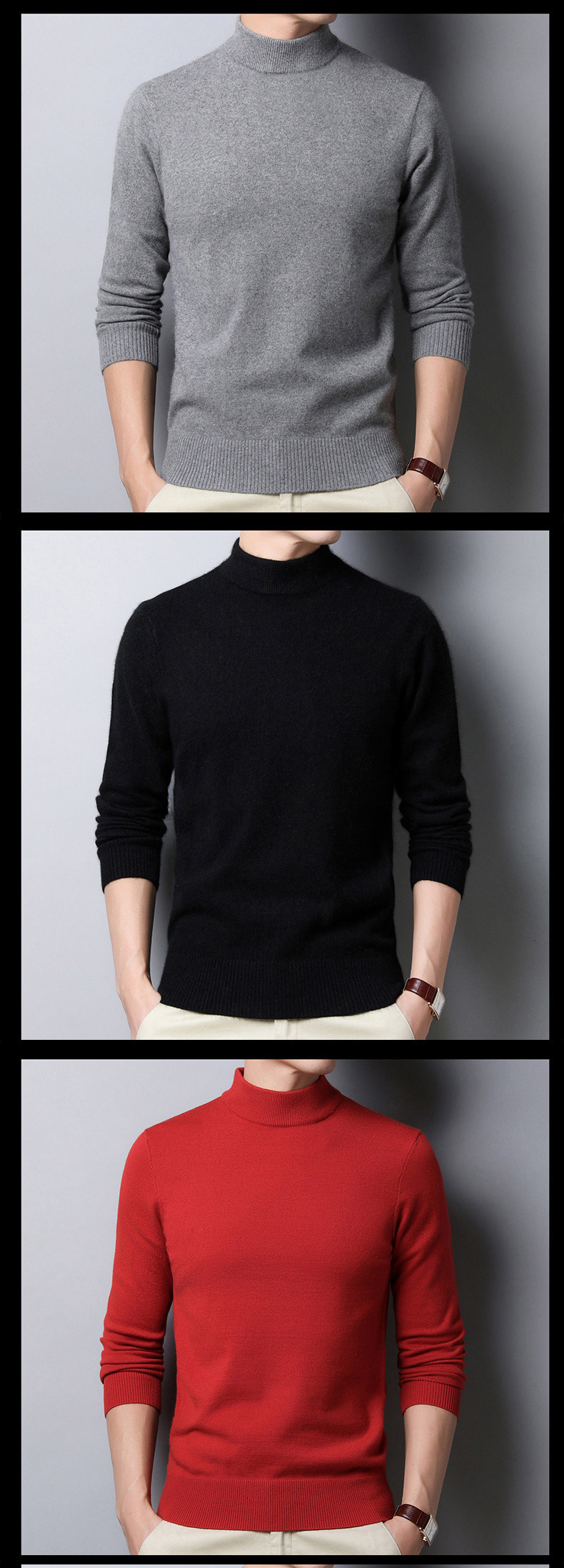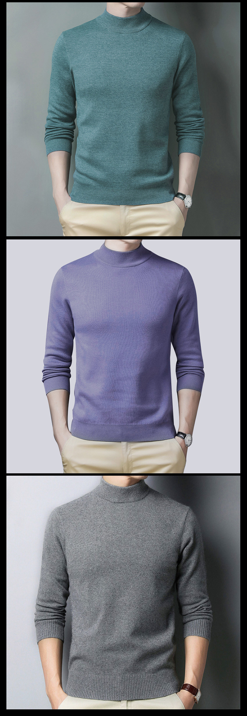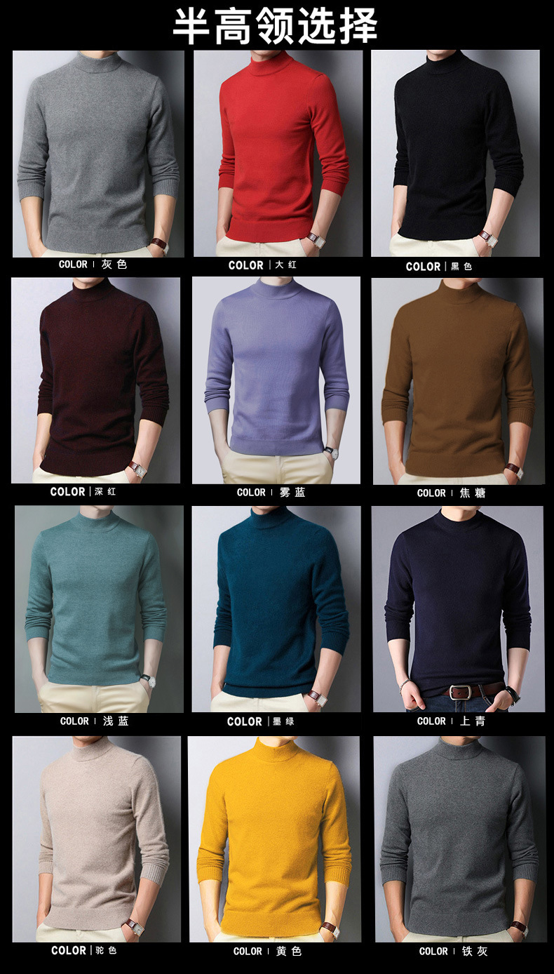 Suéter al por mayor para hombre con cuello medio alto, comercio exterior coreano, tendencia casual, cuello medio redondo, suéter de punto de fondo para hombre, fábrica de comercio exterior