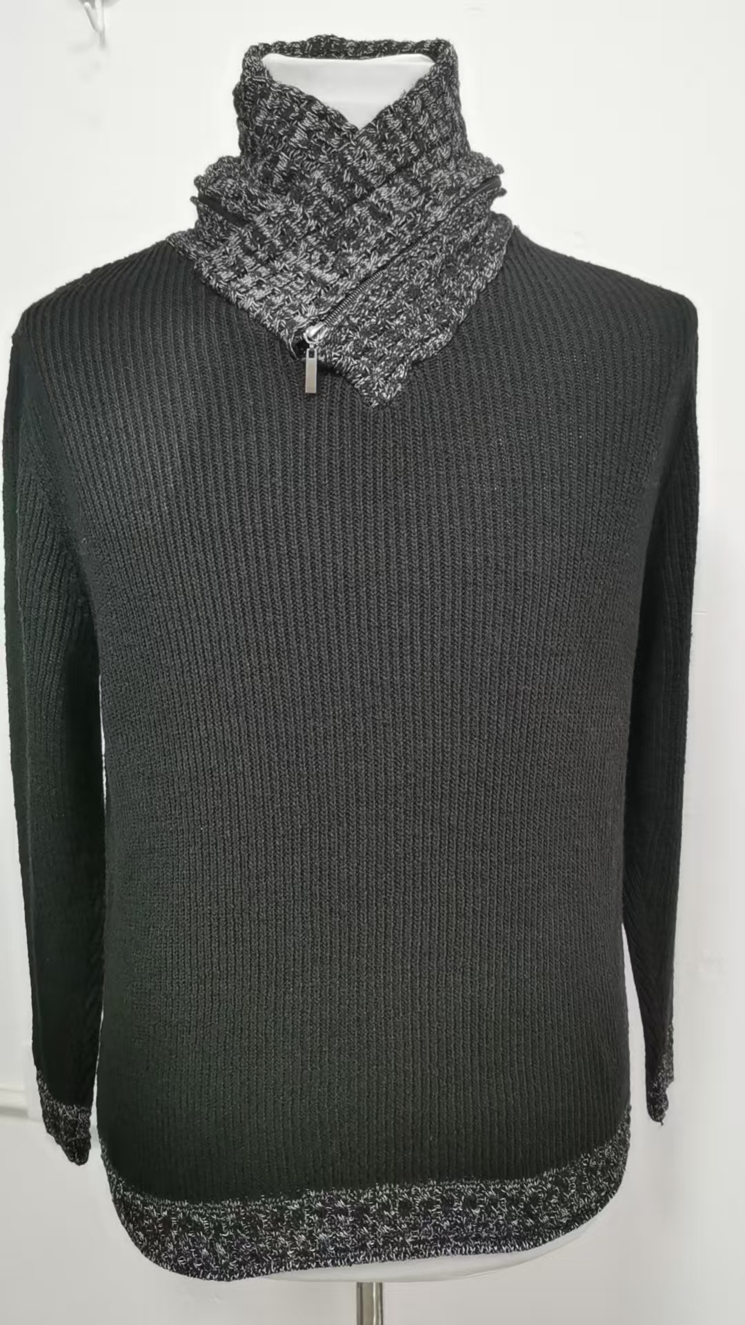 Suéter tipo jersey, estilo europeo y americano, comercio transfronterizo, otoño e invierno, talla grande, para hombre, manga larga, bufanda moderna, cuello alto, suéter de punto transfronterizo para hombre