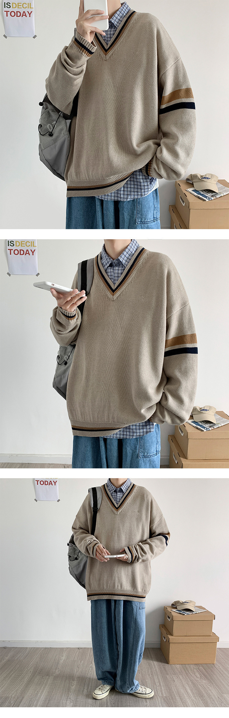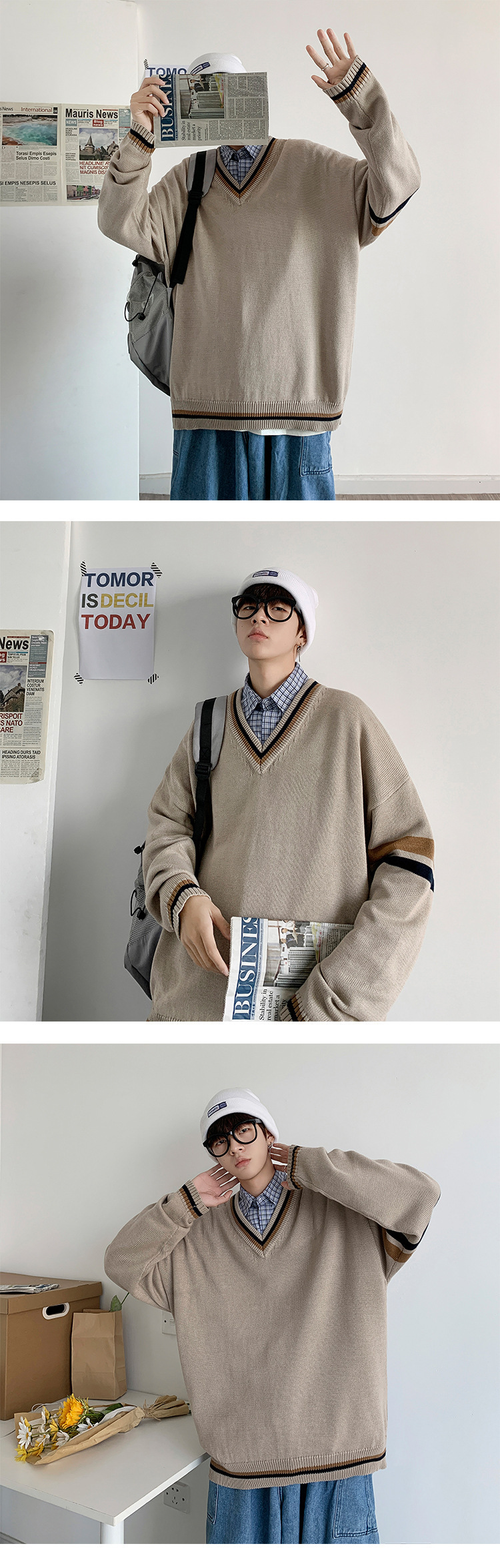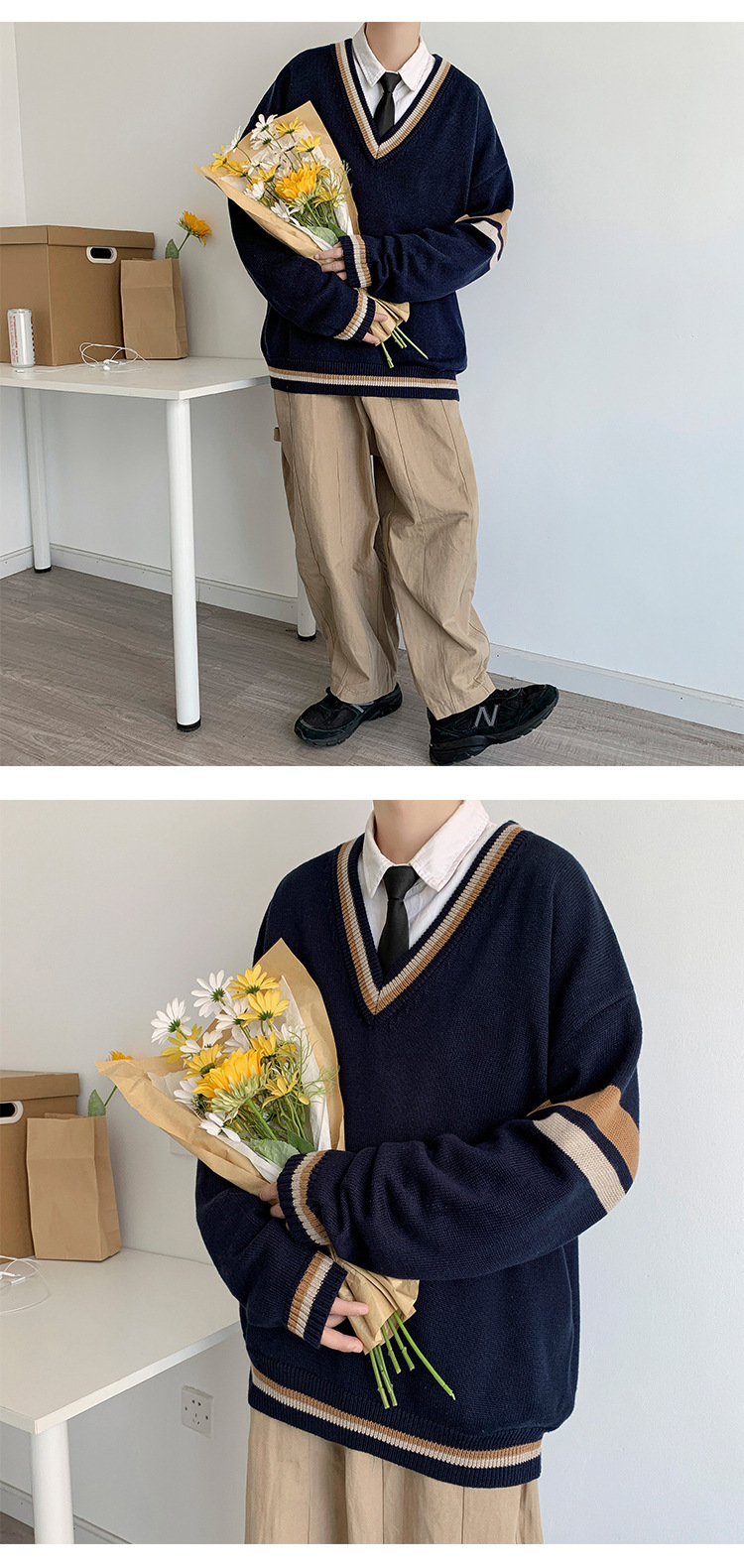 Todo fósforo color a juego pareja suéter hombres Otoño e Invierno Chaleco de punto suelto estilo coreano moda estilo preppy desgaste exterior con cuello en V