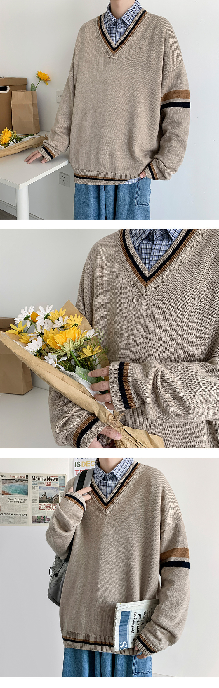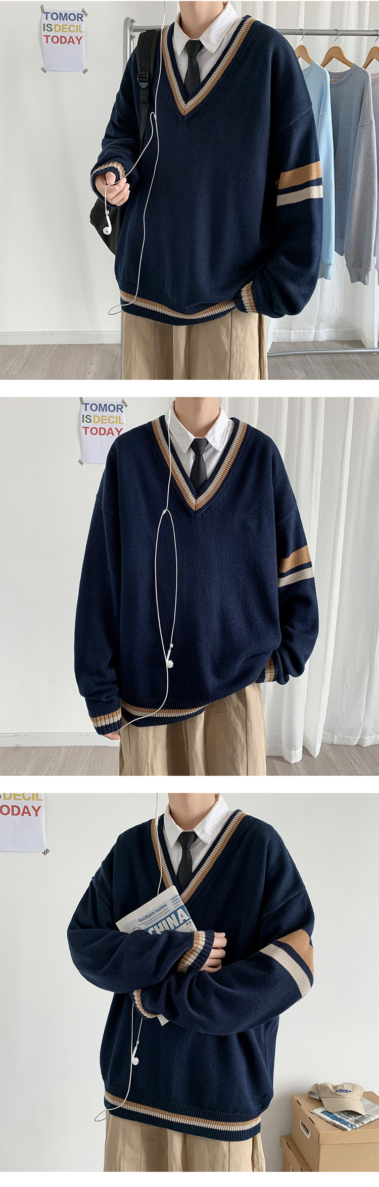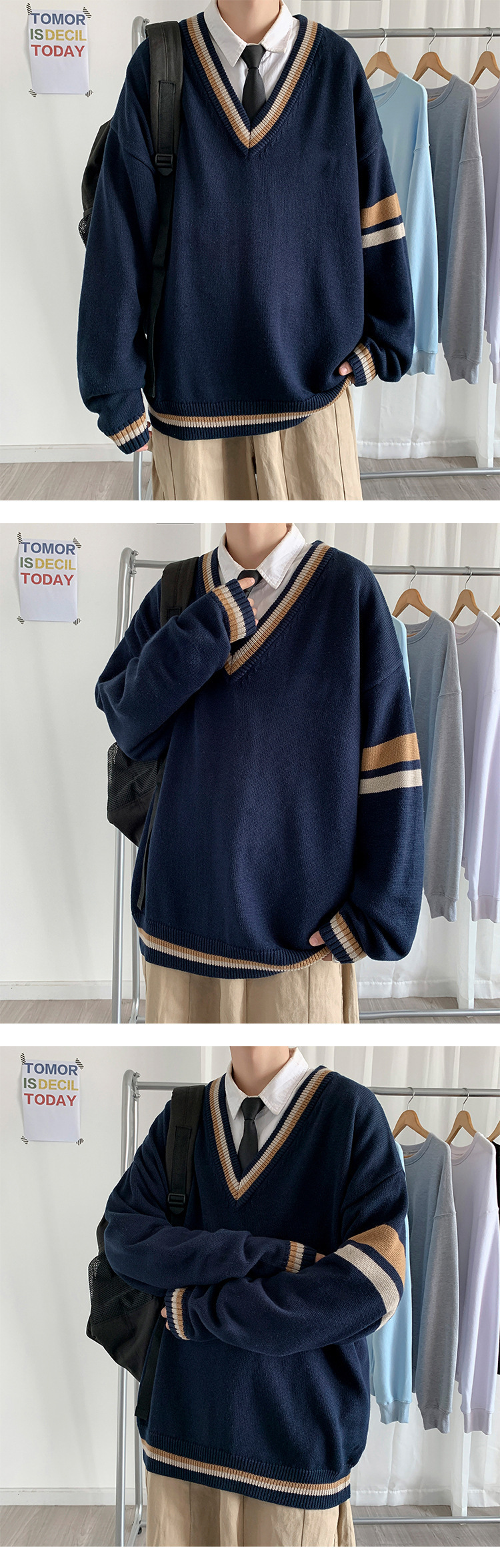 Todo fósforo color a juego pareja suéter hombres Otoño e Invierno Chaleco de punto suelto estilo coreano moda estilo preppy desgaste exterior con cuello en V