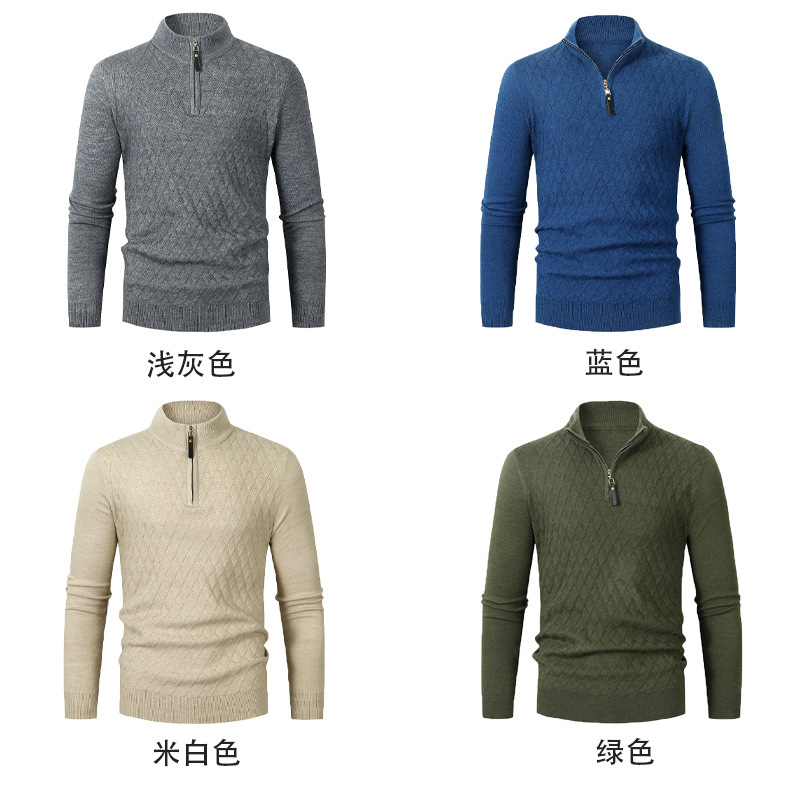 Primavera transfronteriza y otoño Comercio exterior medio cuello alto cremallera suéter de los hombres de manga larga suéter de los hombres camisa de fondo superior de los hombres al por mayor