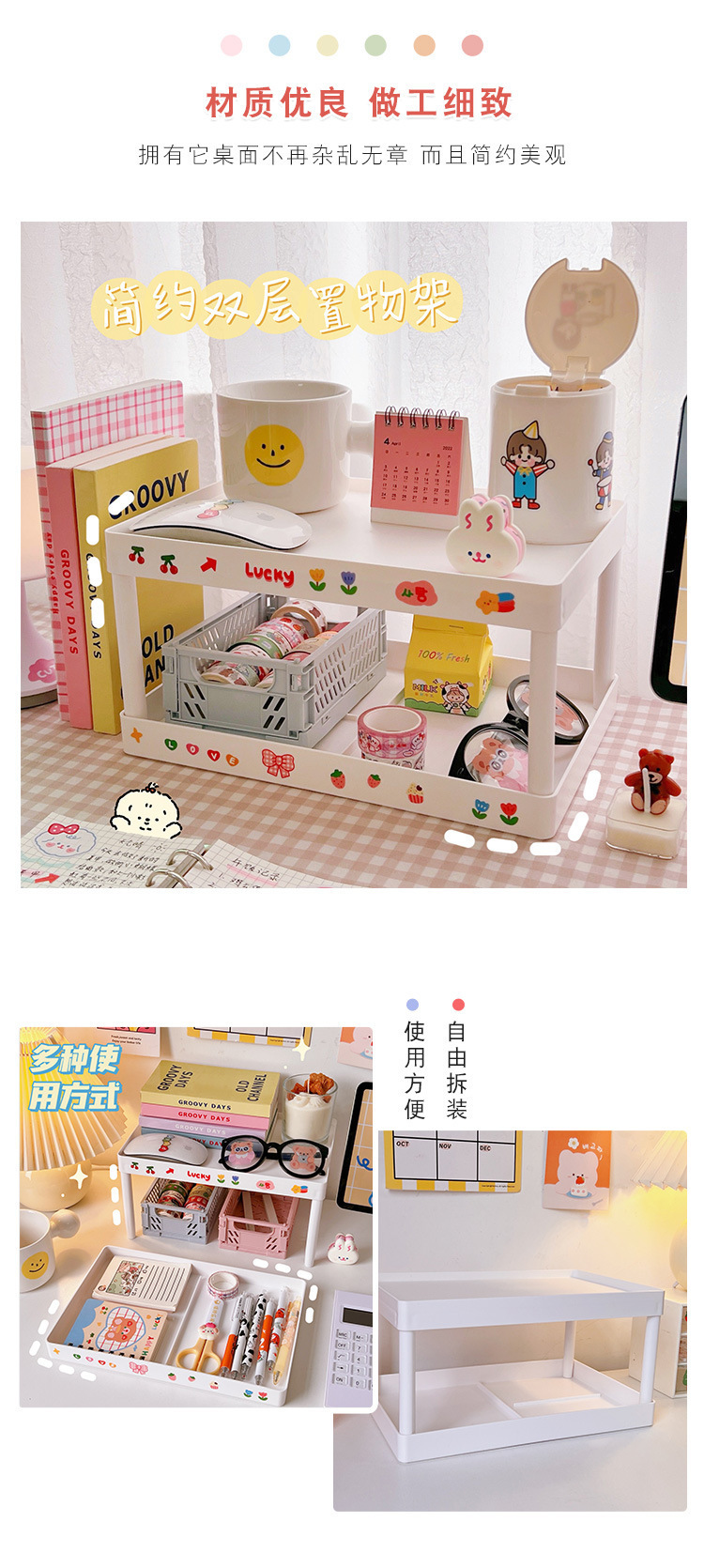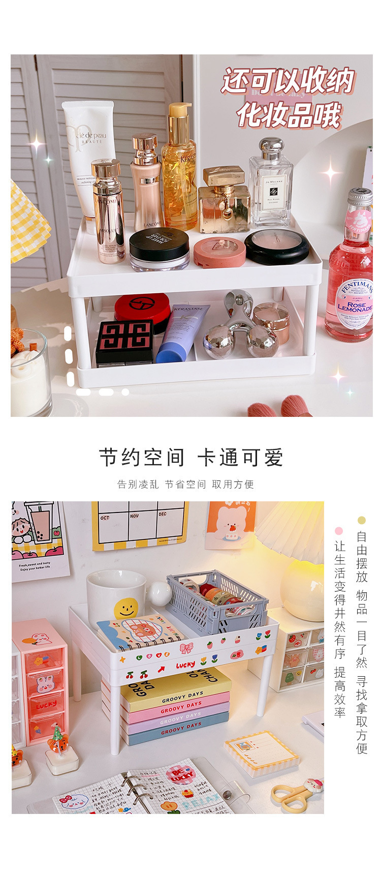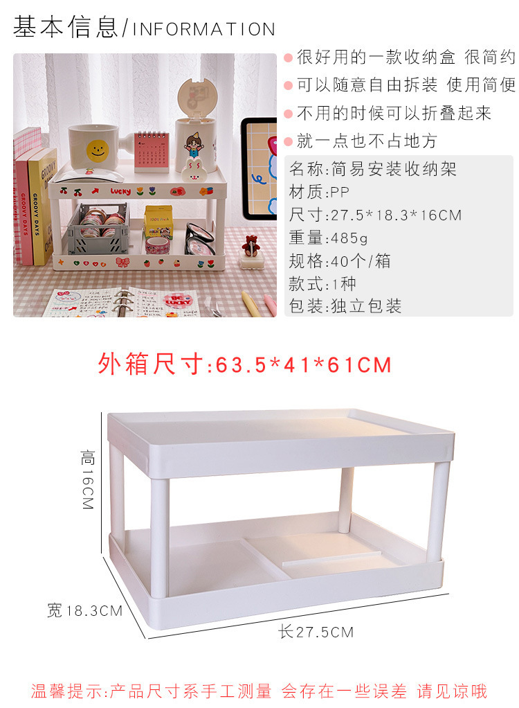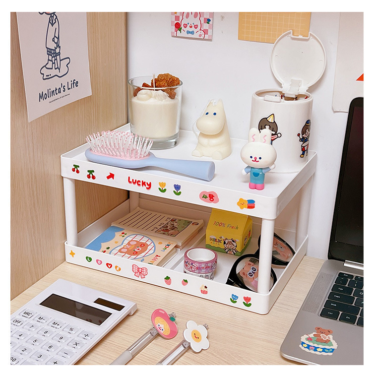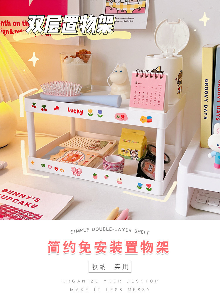 Simple ins instalación-libre elegante de doble capa de almacenamiento de escritorio dormitorio escritorio plegable de almacenamiento rack organizador rack