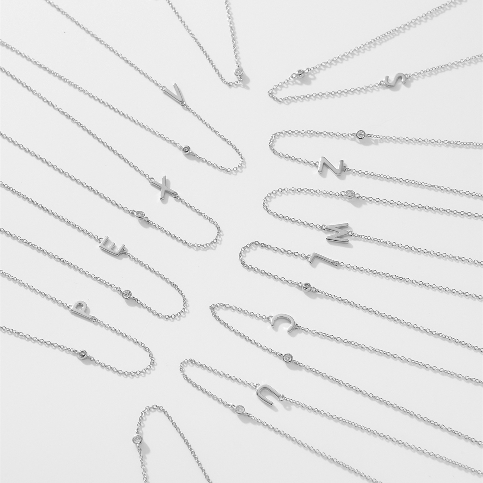 Collar con el alfabeto inglés de 26 letras para mujer, plata de ley S925, cadena de clavícula elegante y brillante, joyería nueva y popular en stock, venta al por mayor