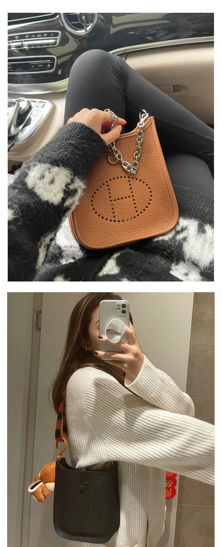 Nuevo 19 evlin casual todo-Partido primera capa de piel de vaca cubo lychee patrón portátil hombro mensajero bolsa de cuero Mujer