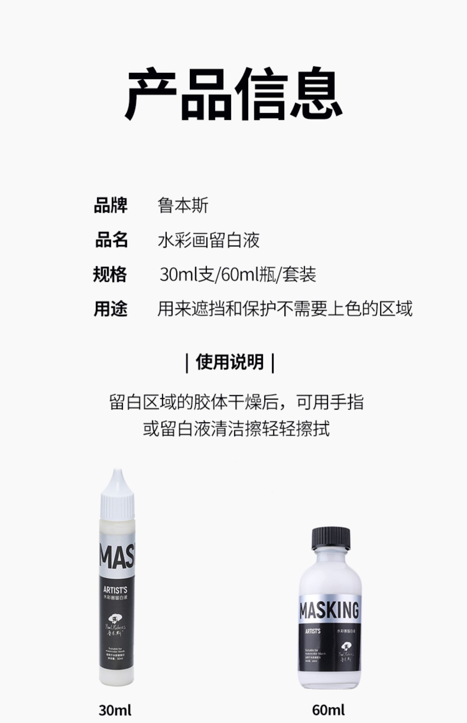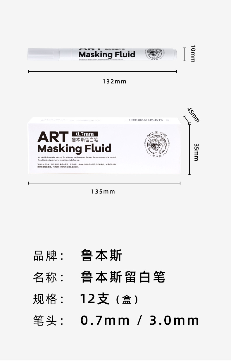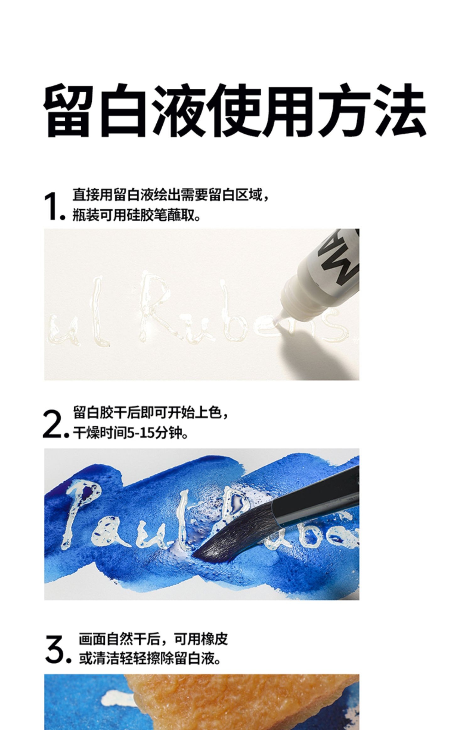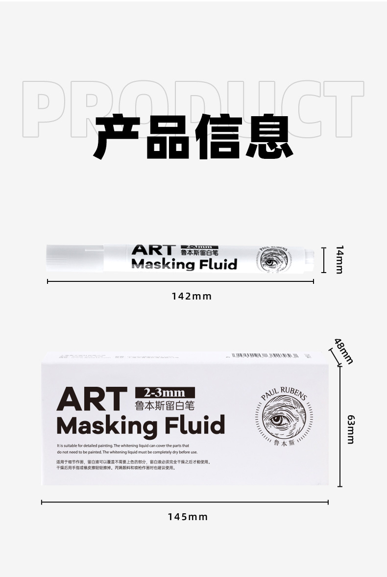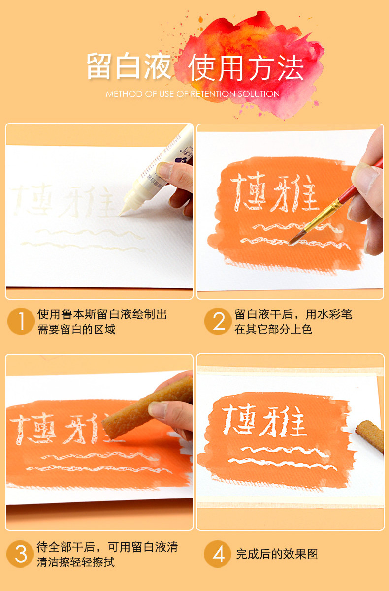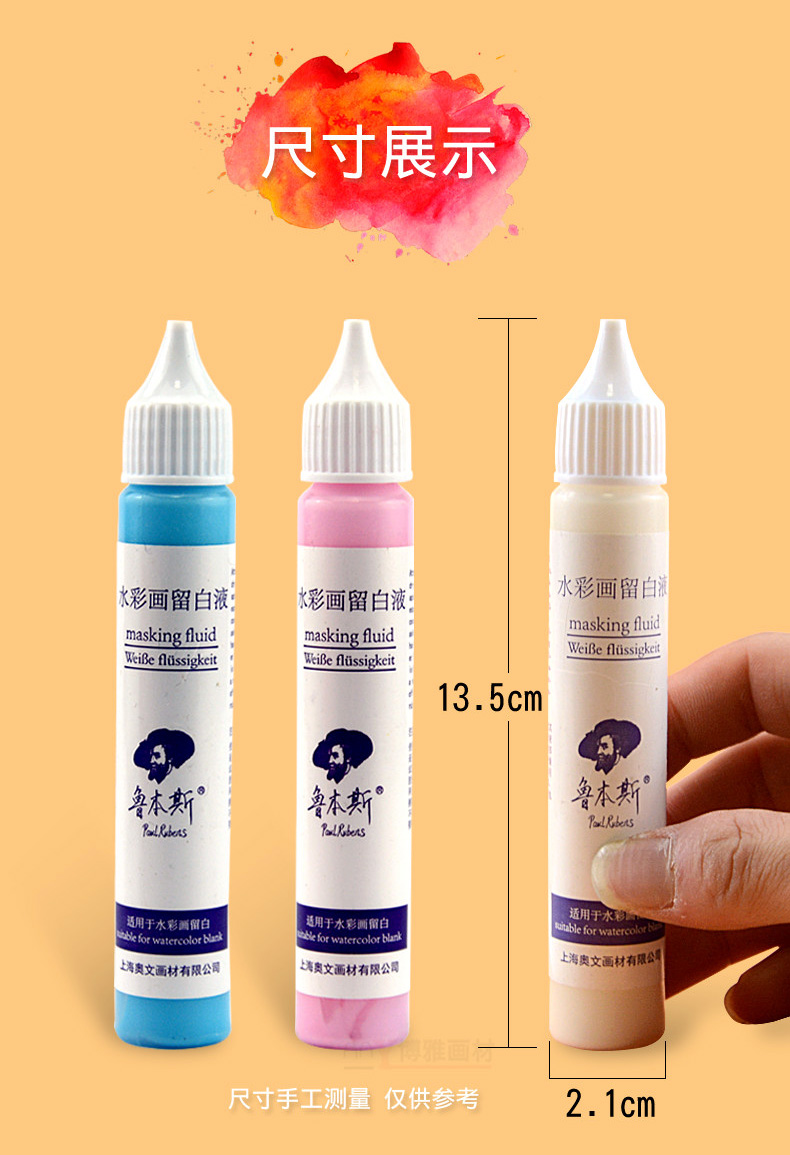 Rubens acuarela pintura especial pluma blanca flujo blanco líquido chino pintura cubierta pegamento blanco piel de cerdo limpie la goma árabe