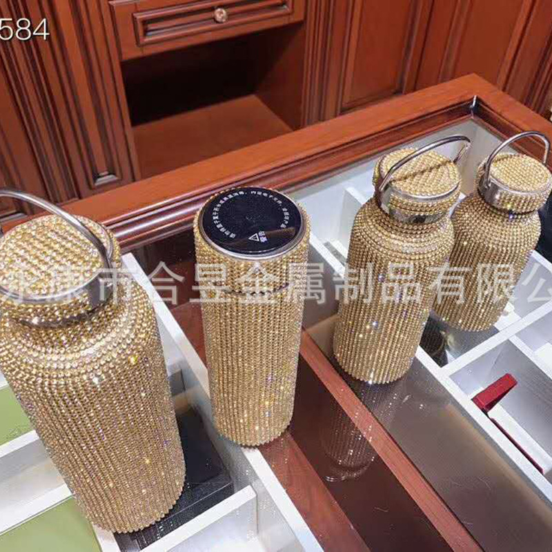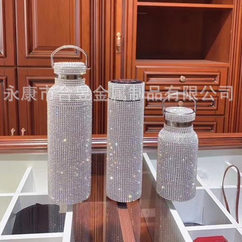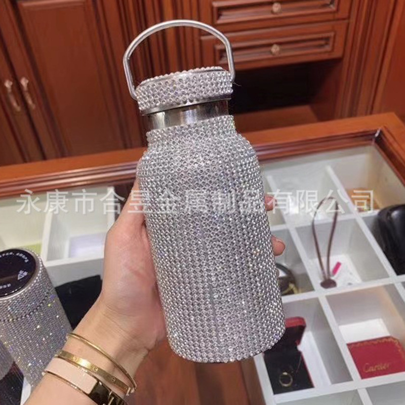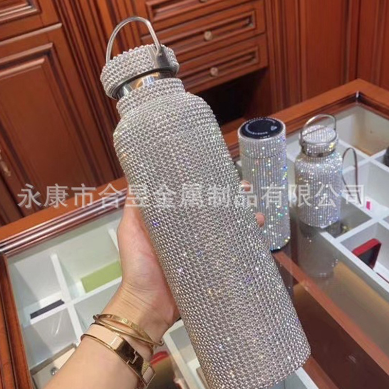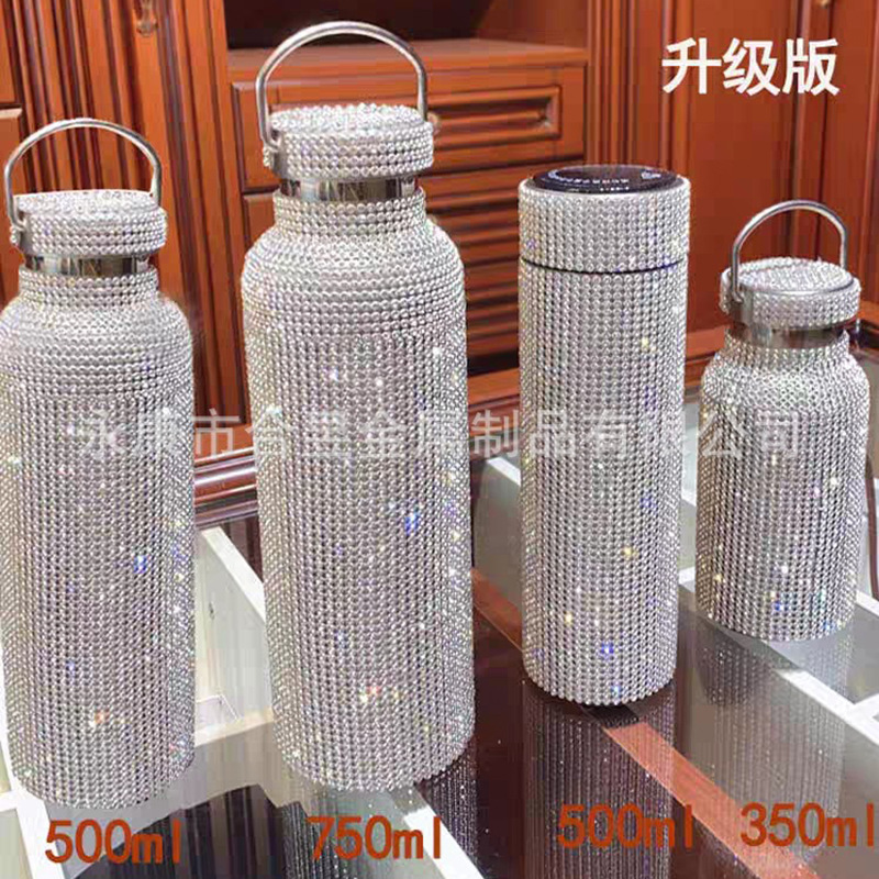 Con incrustaciones de diamantes de 20oz de acero inoxidable aislado frío taza recta taza de café de paja taza de agua del coche