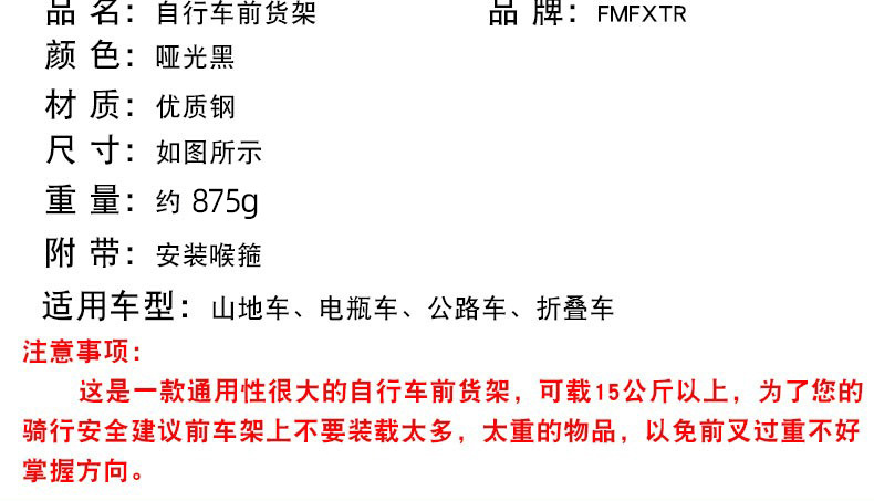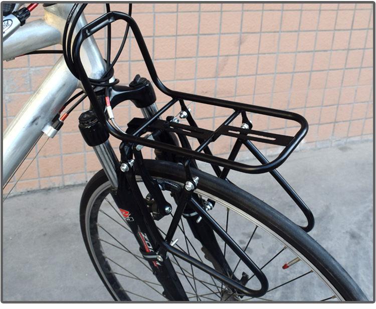 Bicicleta de montaña estante delantero disco de freno bicicleta marco delantero estante acero negrita Larga Distancia bicicleta cesta de verduras accesorios de rack