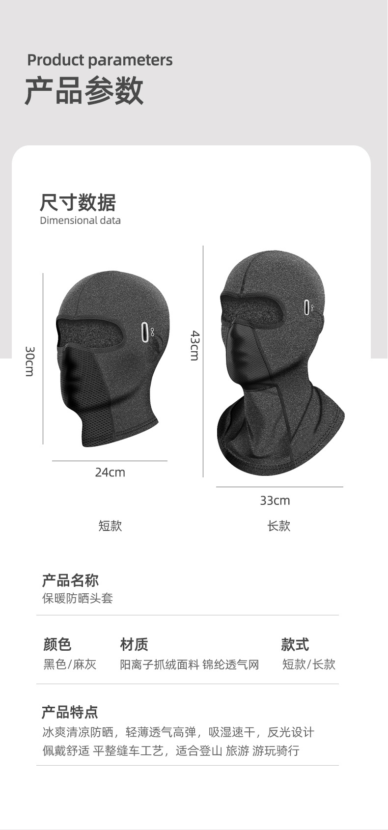 ColoresNegro corto,Gris corto,Gafas cortas negras,Gafas cortas gris,Negro largo,Gris largo,Gafas largas negras,Gafas largas gris,Sombrero cálido negro,Sombrero gris cálido,Gafas gorro cálido negro,Gafas Gorro Gris,Vasos Camuflaje largo