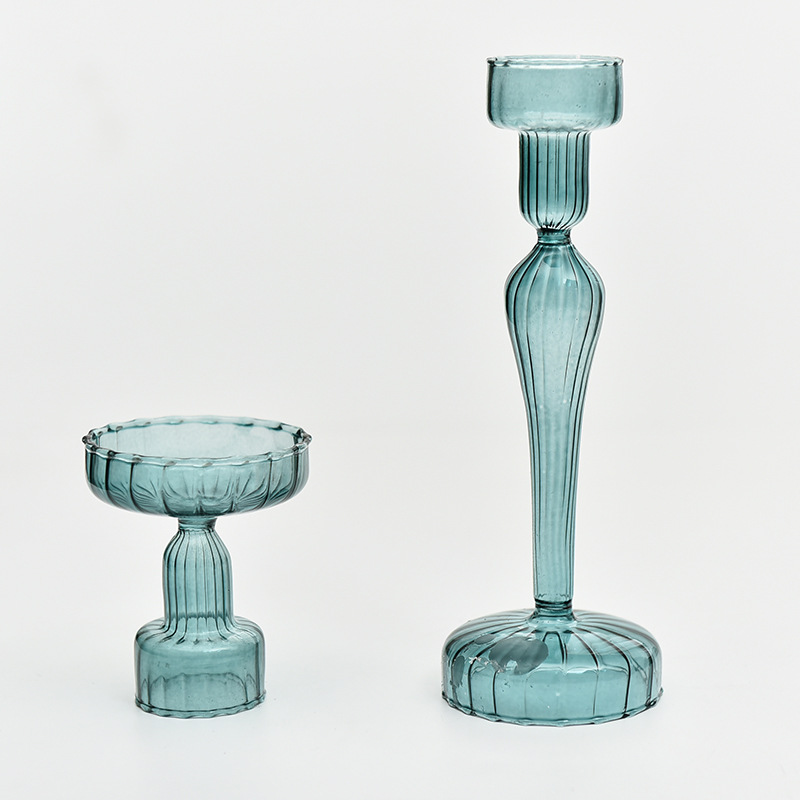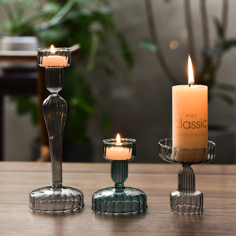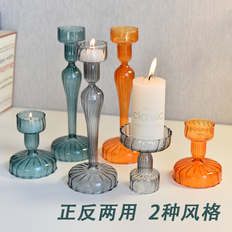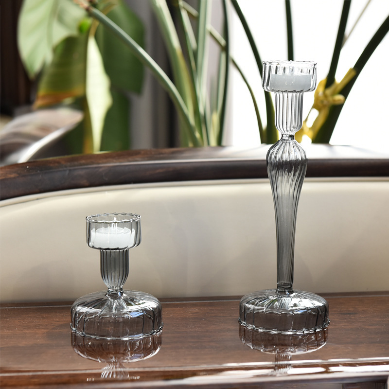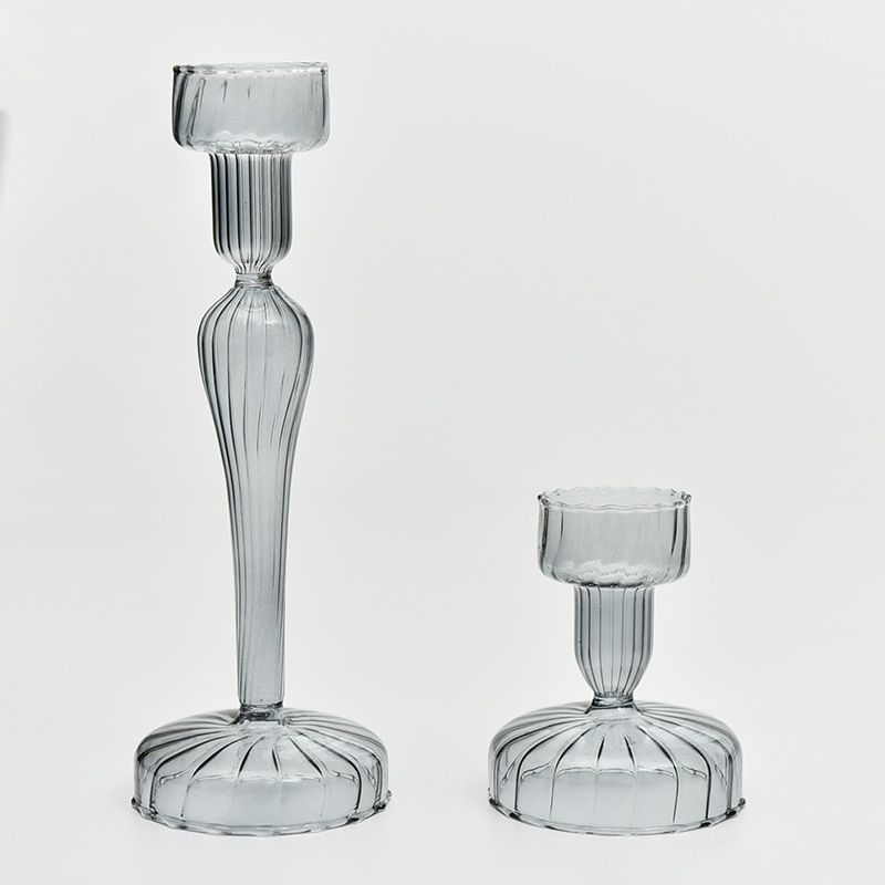 A rayas creativo candelabro de vidrio de color transparente candelabro mesa de comedor decoración europea de doble uso candelabro de fábrica al por mayor