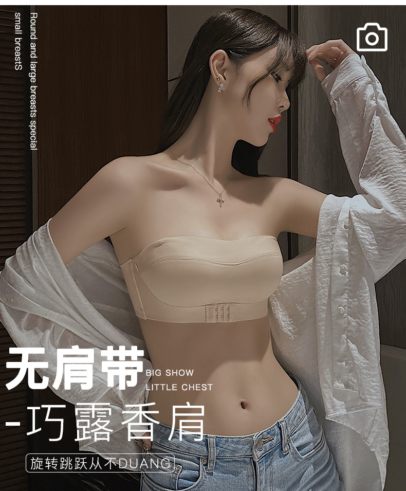 Ropa interior sin tirantes de las mujeres antideslizante push up pequeño tubo de envoltura en el pecho Top verano belleza espalda sujetador invisible anti-exposición vestido de novia especial