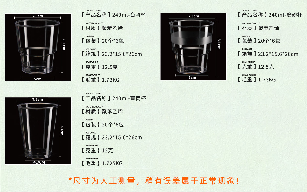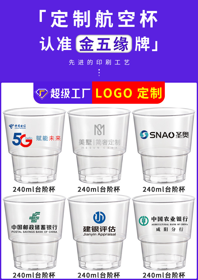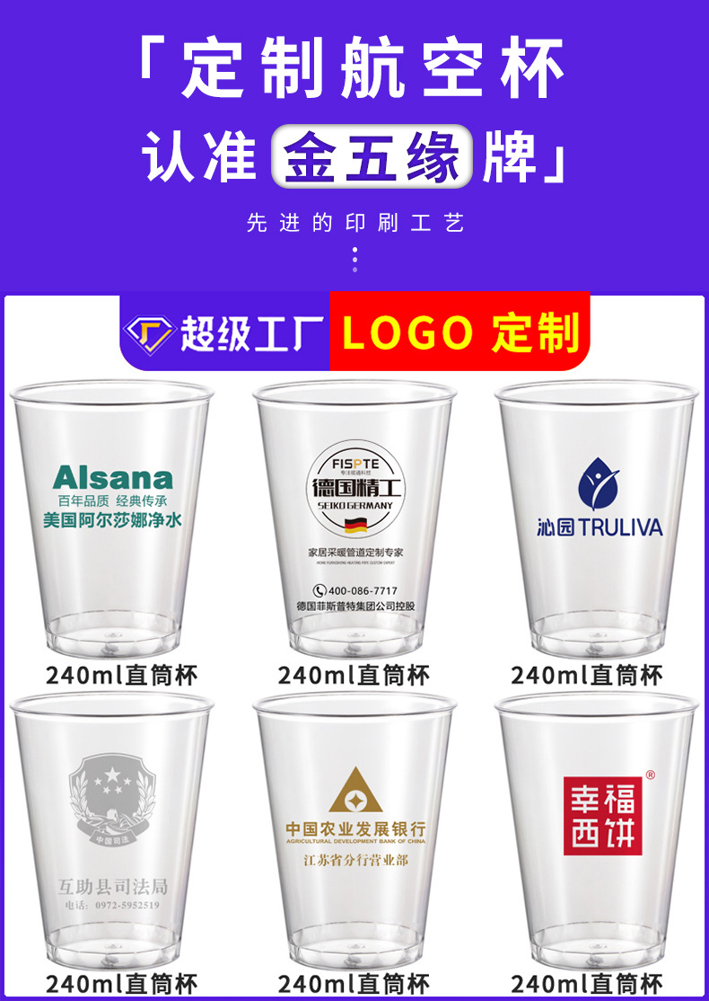 Jinwuyuan 240ml taza de plástico desechable para el hogar taza de bebida taza de aviación al por mayor taza de publicidad de oficina