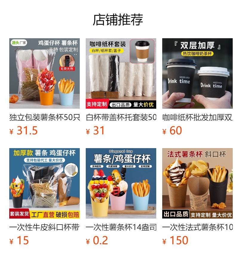 Taza oblicua al por mayor taza de wafer de huevo desechable helado taza de helado negro de piel de vaca taza de papas fritas de papel kraft