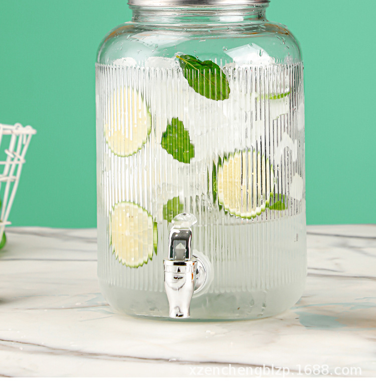 Jarra de vidrio para el hogar de gran capacidad al por mayor, moderna jarra para agua fría, recipiente para bebidas, jarra para jugo con grifo