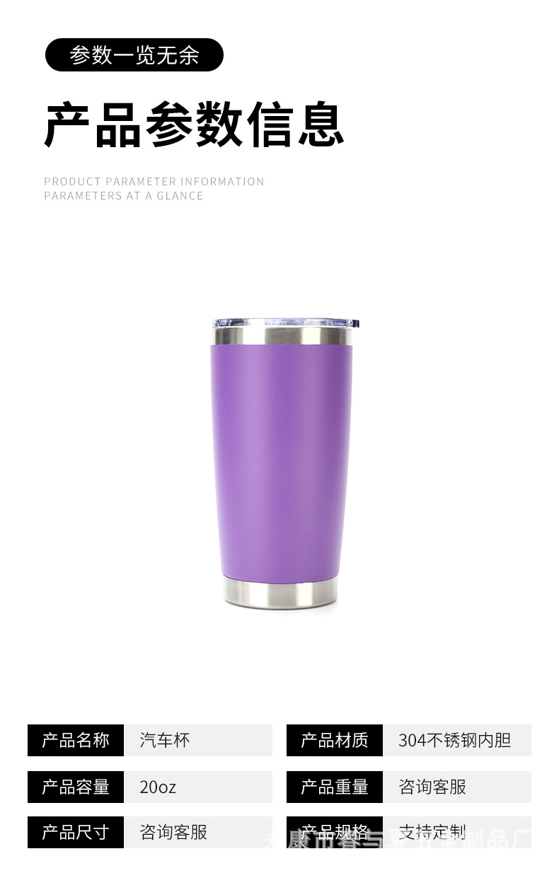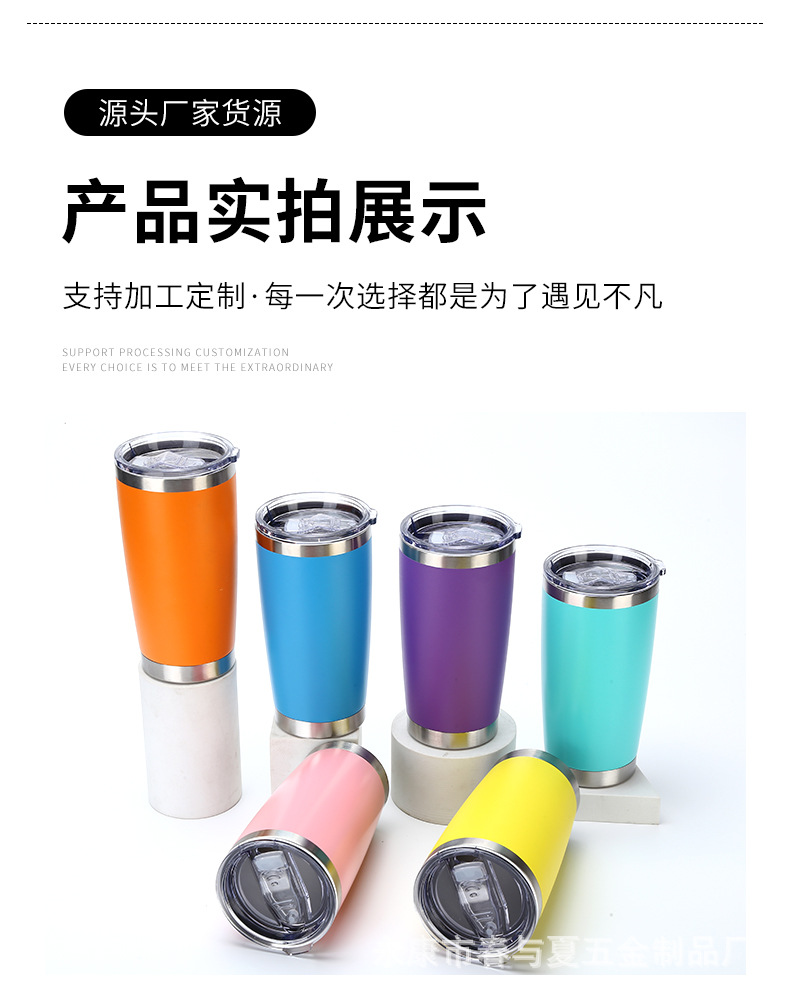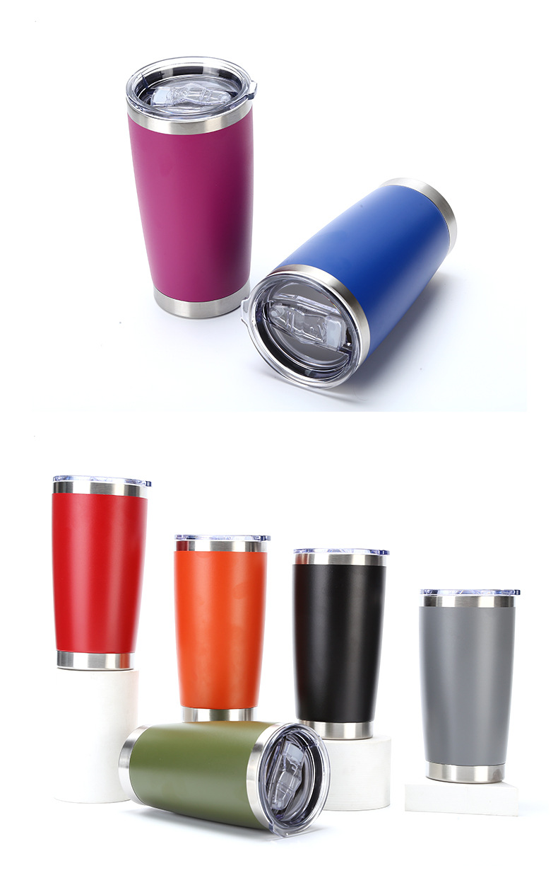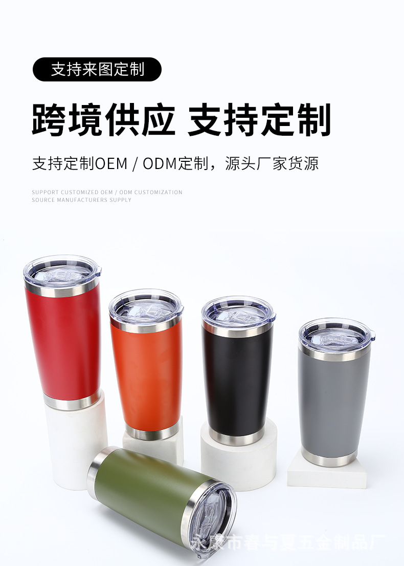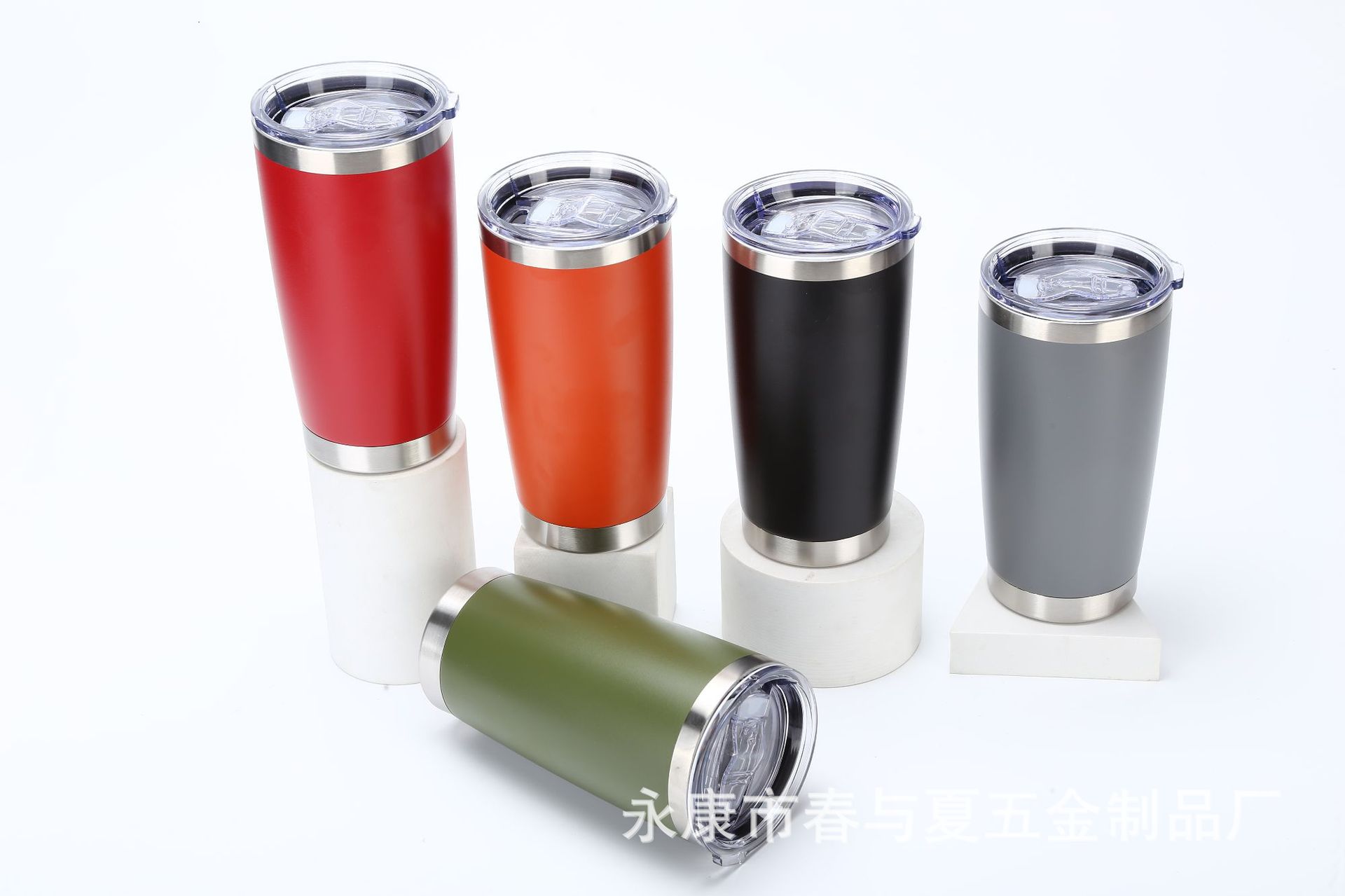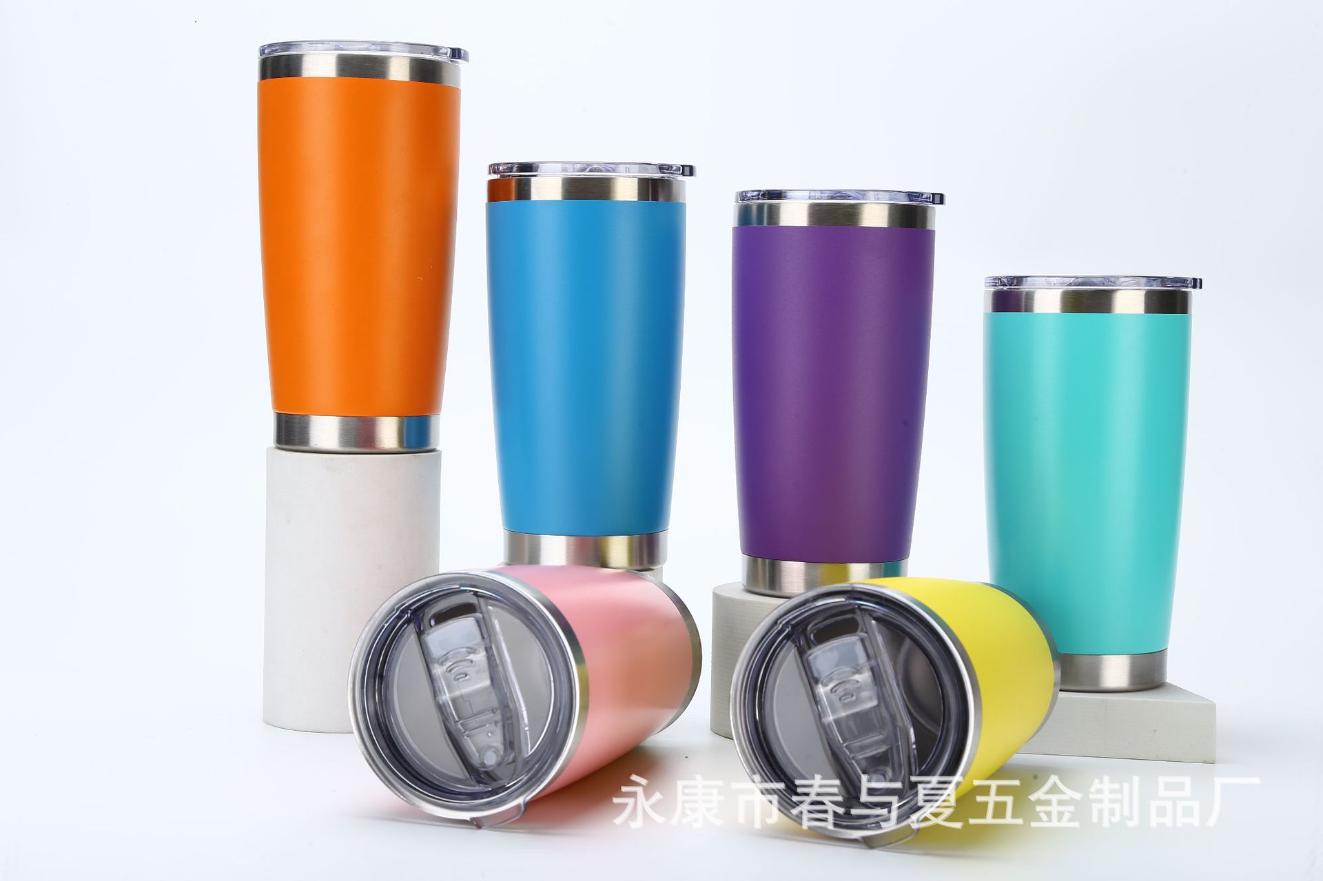 Amazon proporciona especialmente 20oz taza de coche de pulverización de plástico 304 de acero inoxidable de doble capa de aislamiento térmico y aislamiento frío coche regalo taza de helado