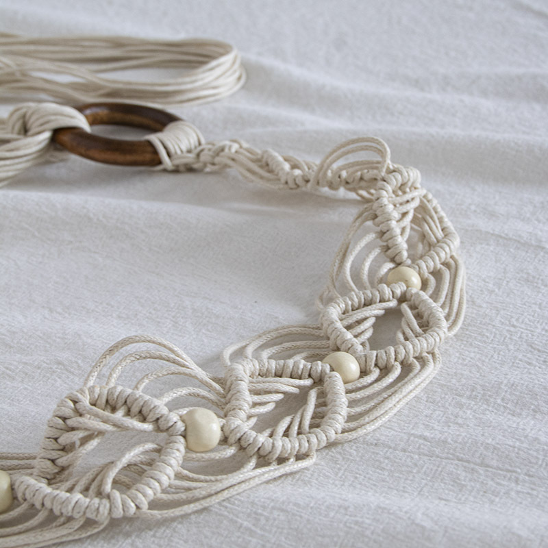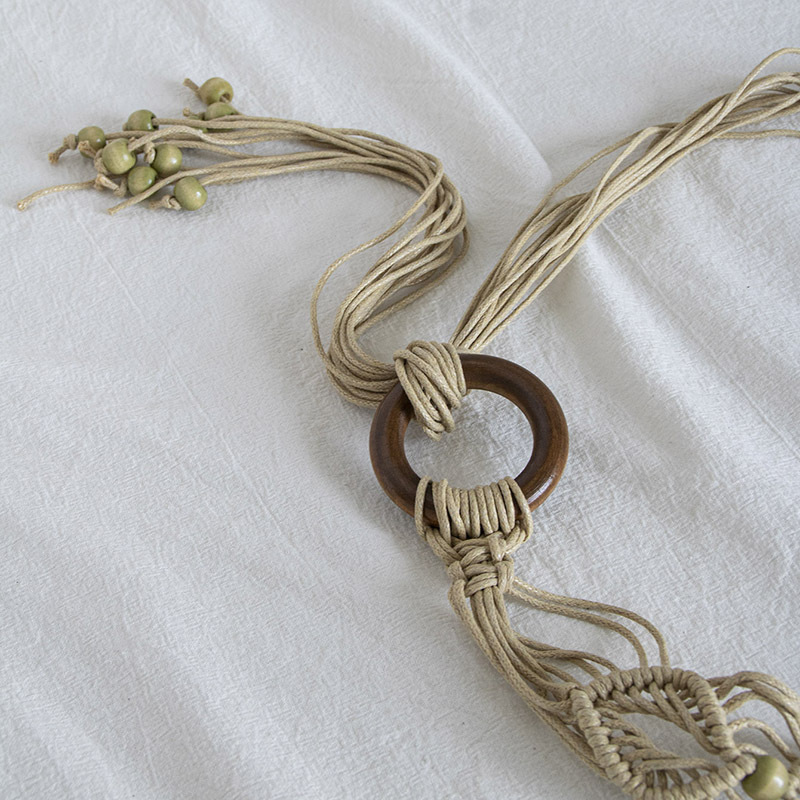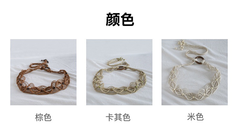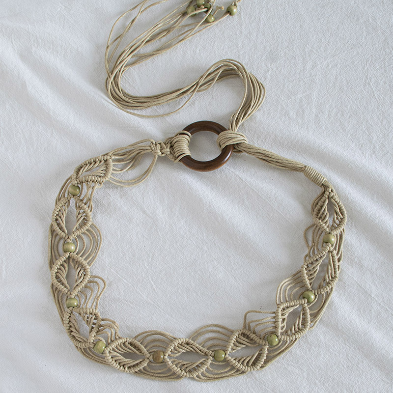 Estilo bohemio cuerda de cera tejida anudada estilo étnico cuentas de madera hechas a mano cinturón de mujer estilo de vacaciones casual exquisita cuerda de cintura