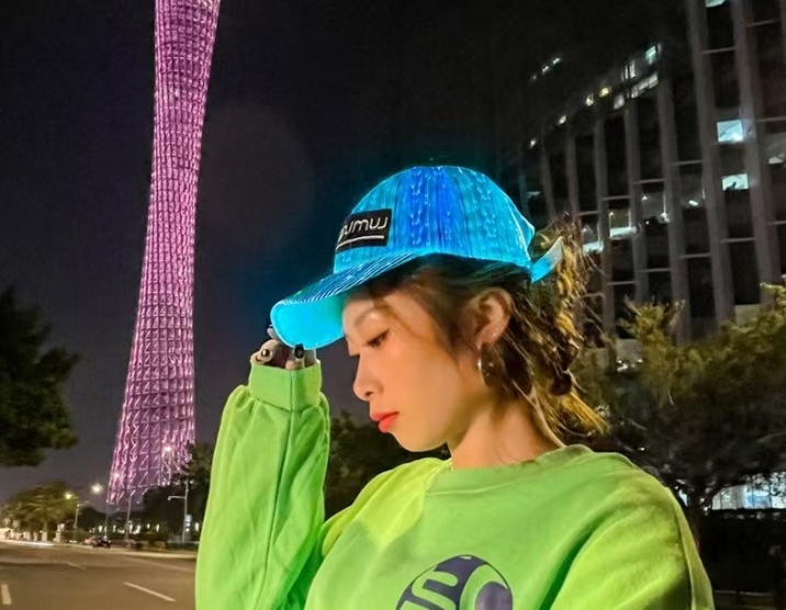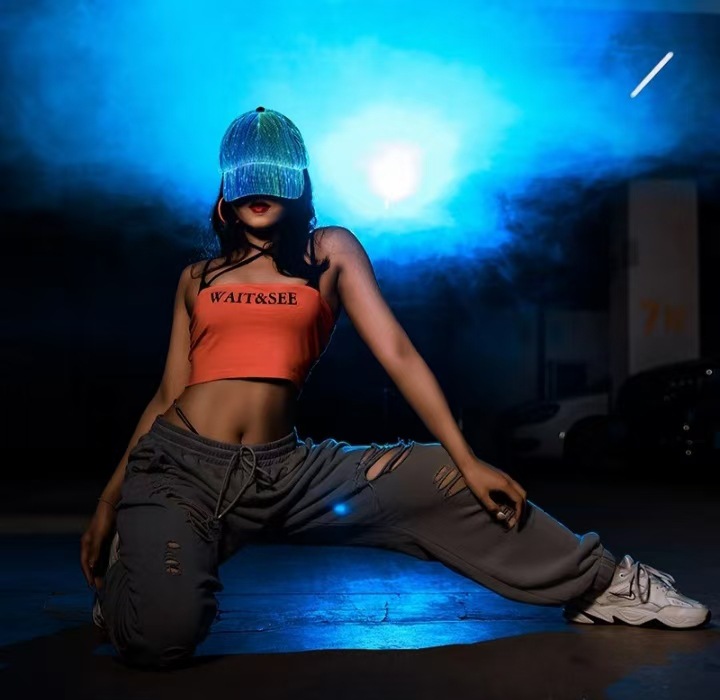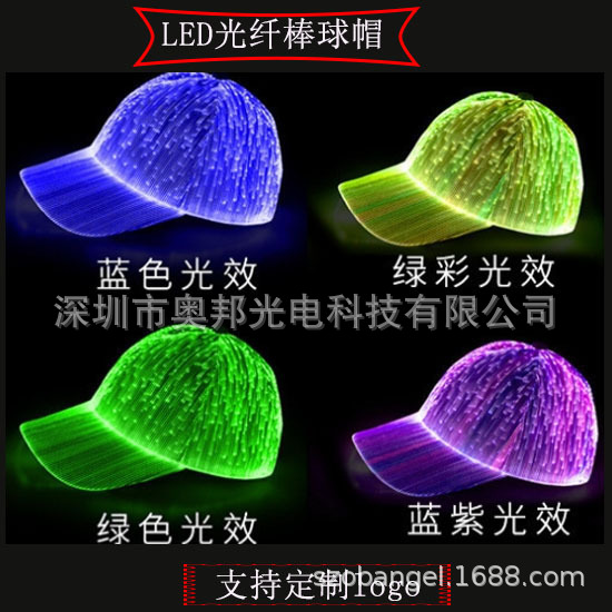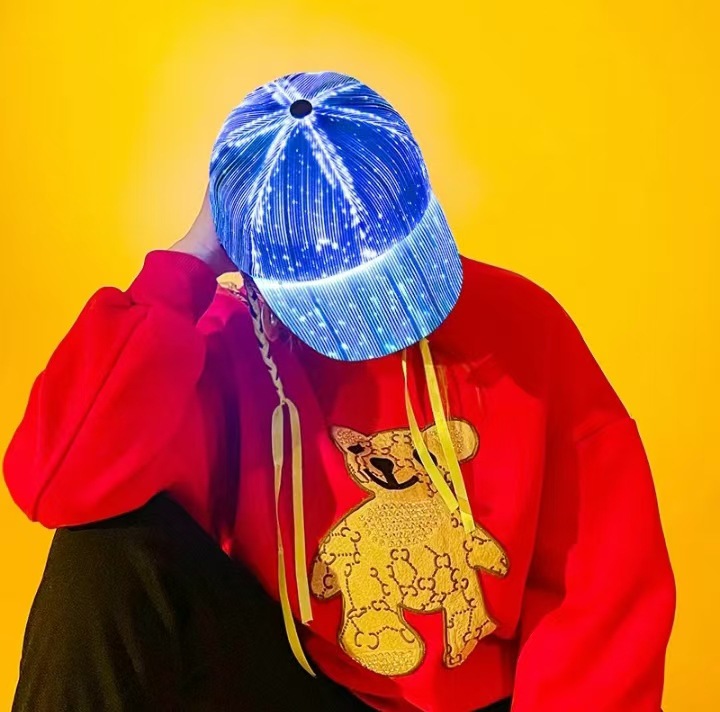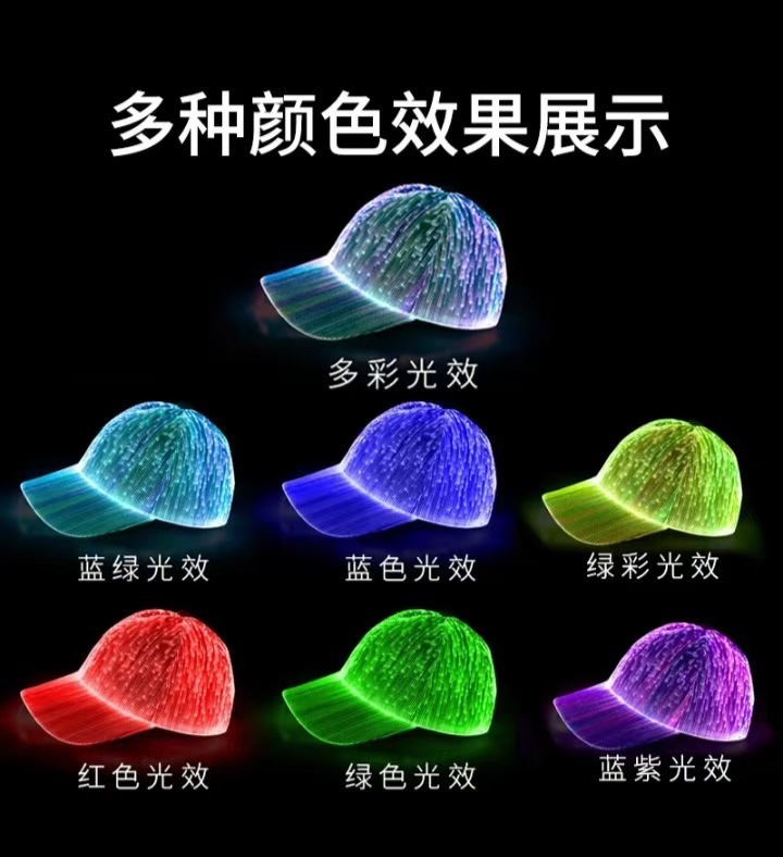 Amazon Venta caliente nuevo LED de fibra óptica luminosa Cap bar discoteca baile luminoso gorra de béisbol hip hop pareja flash cap