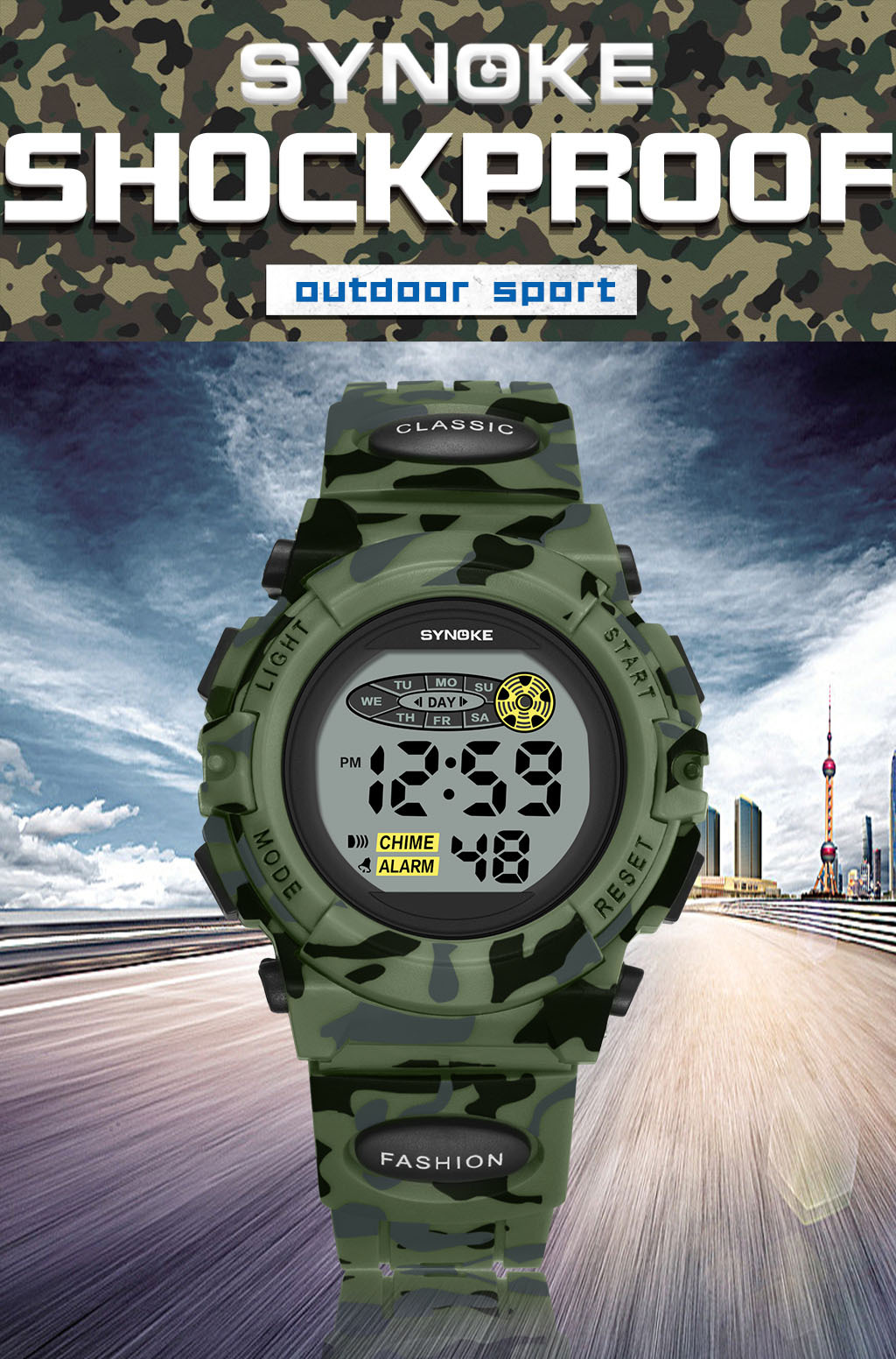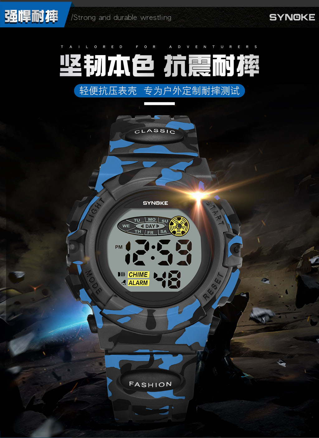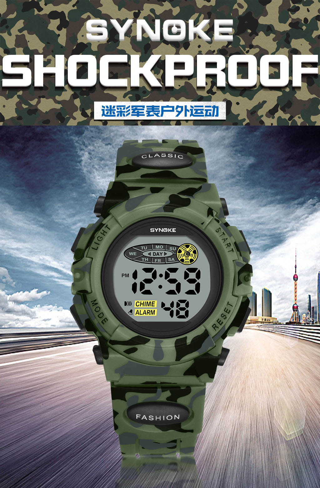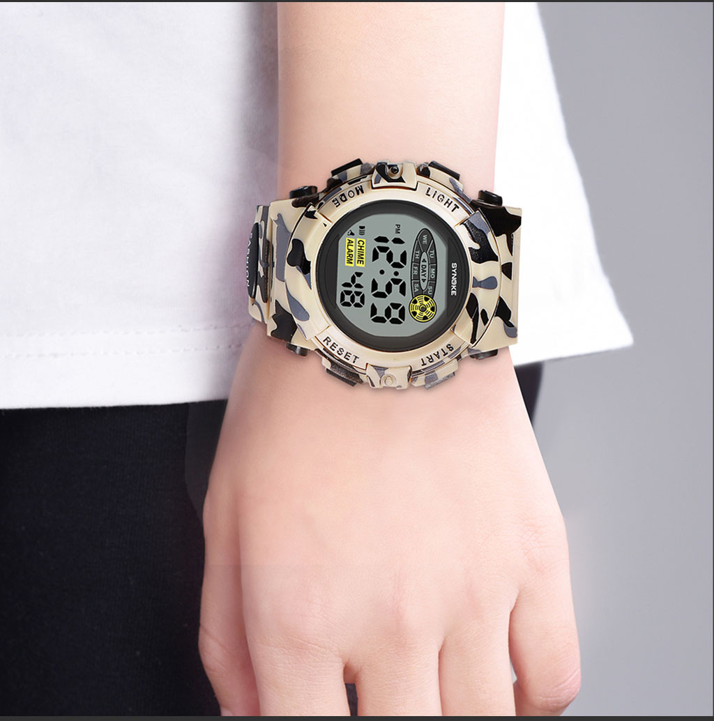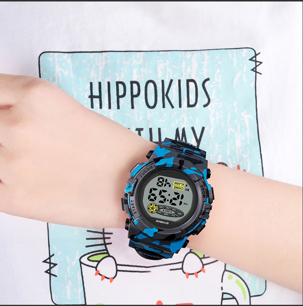 SYNOKE nuevo sudeste asiático popular colorido luminoso niños estudiante reloj electrónico personalizado camuflaje reloj deportivo