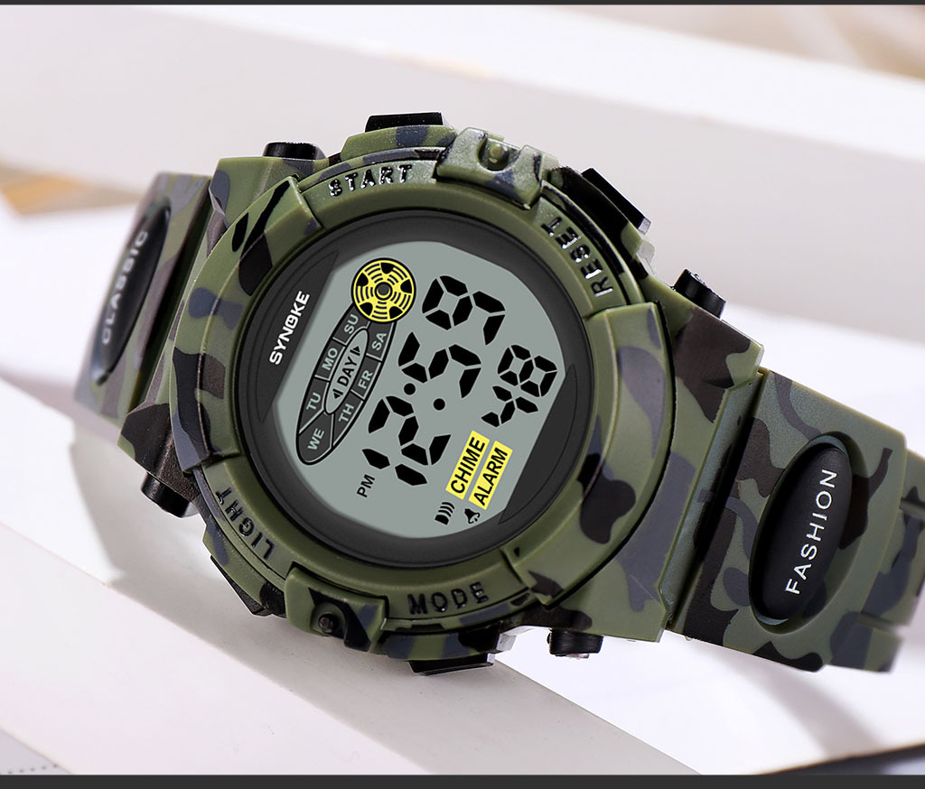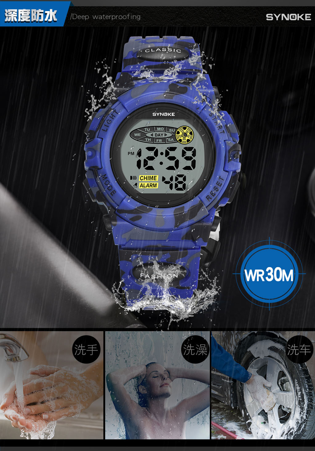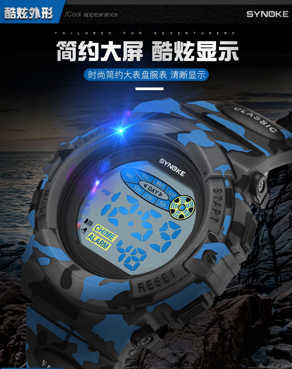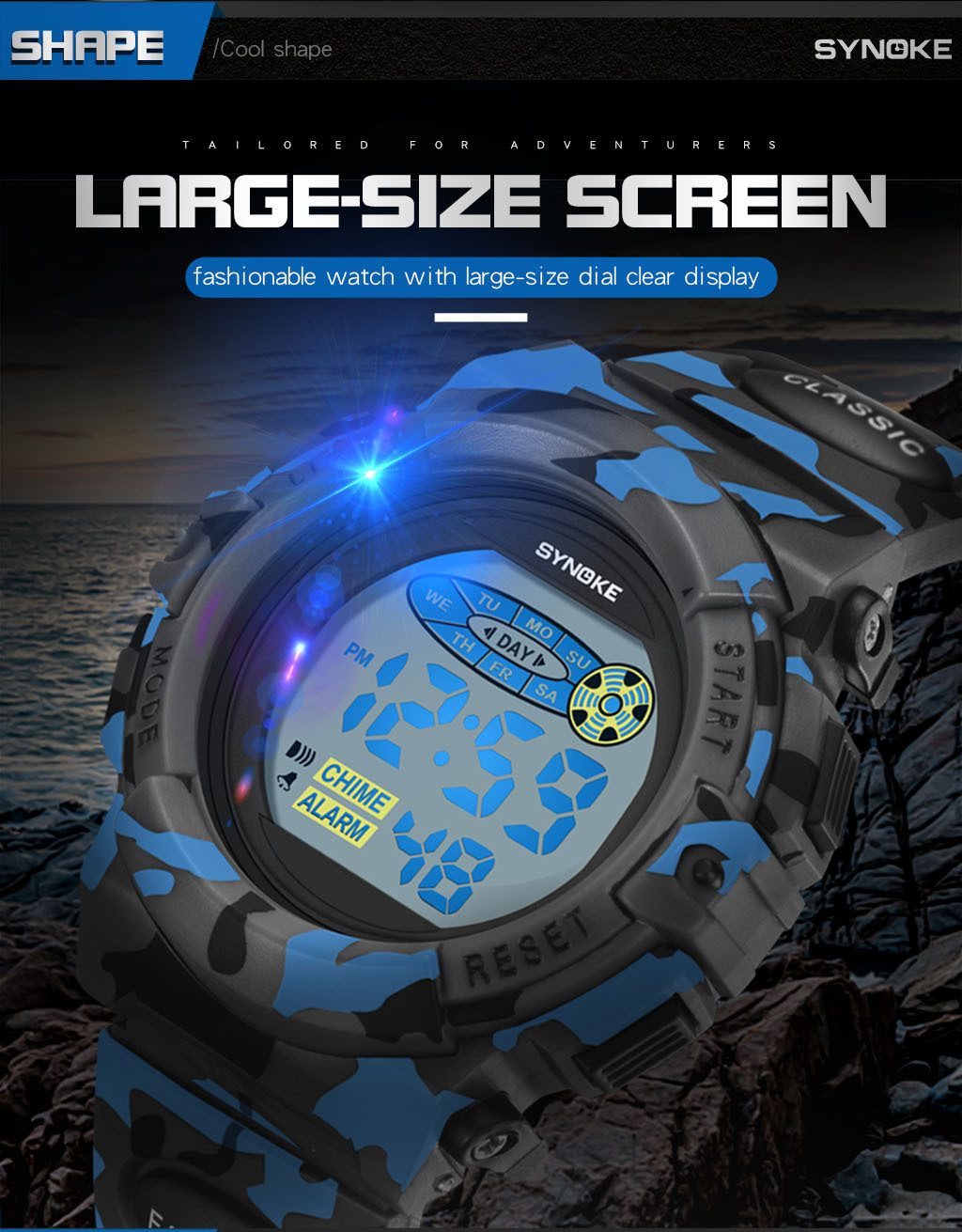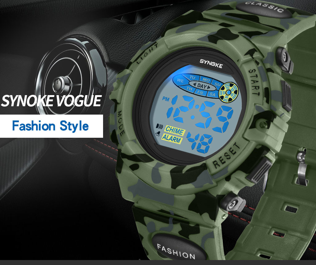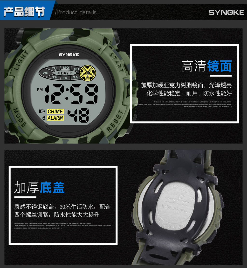 SYNOKE nuevo sudeste asiático popular colorido luminoso niños estudiante reloj electrónico personalizado camuflaje reloj deportivo