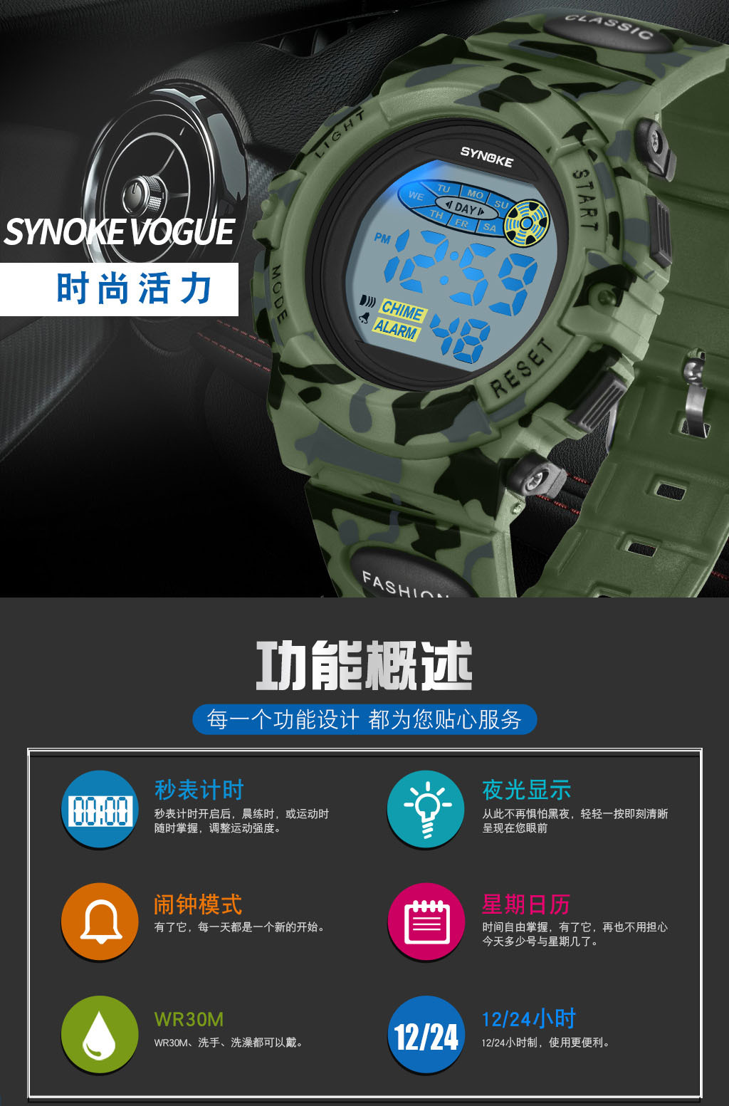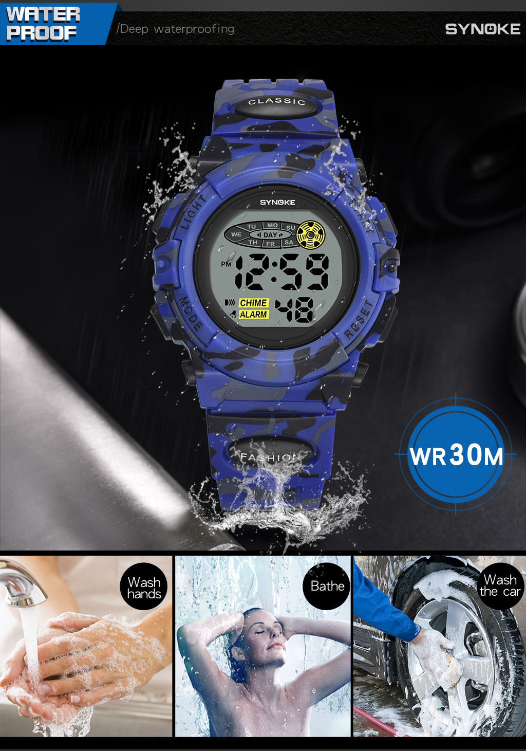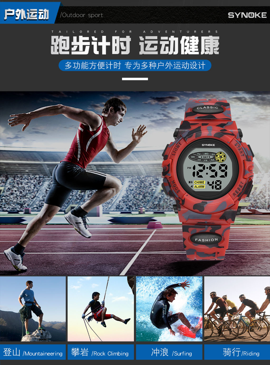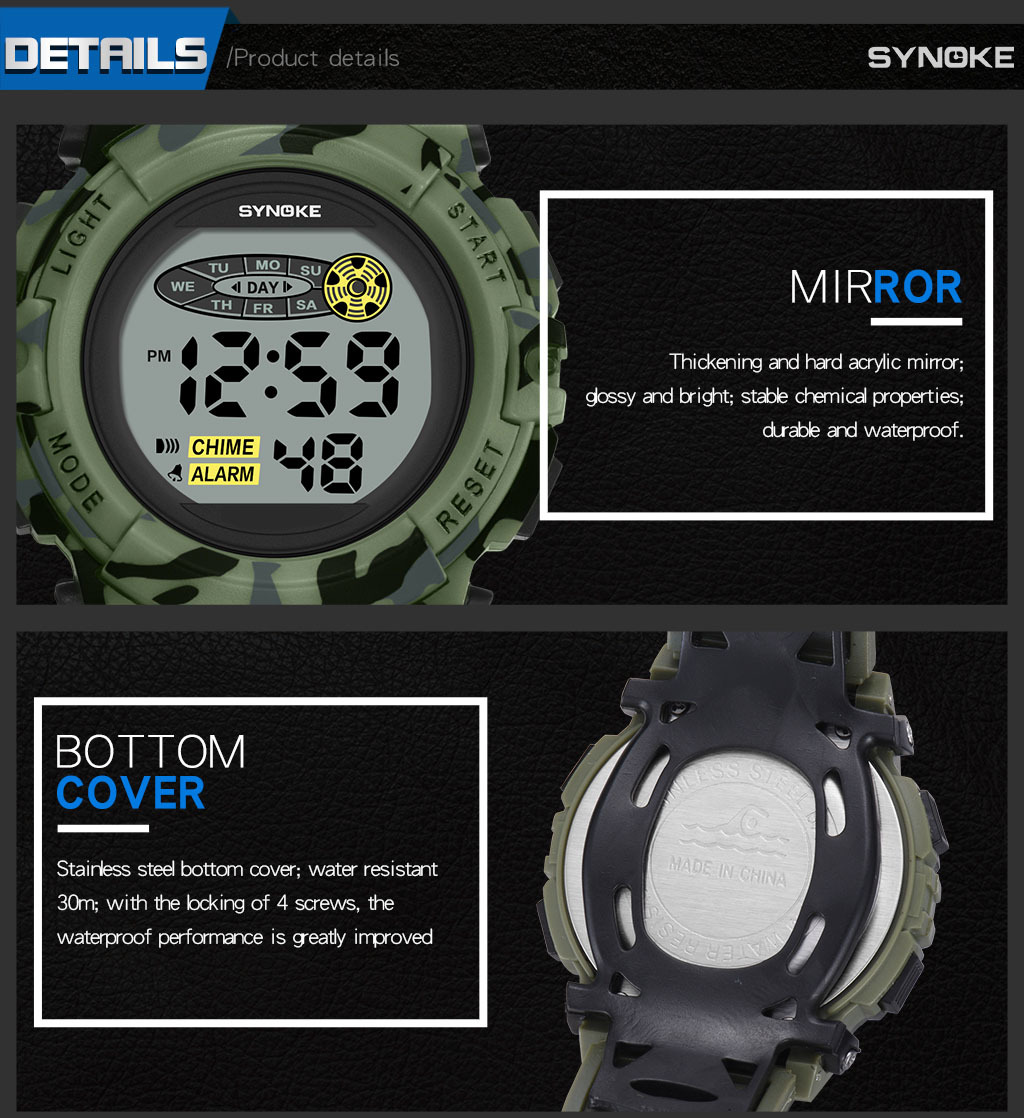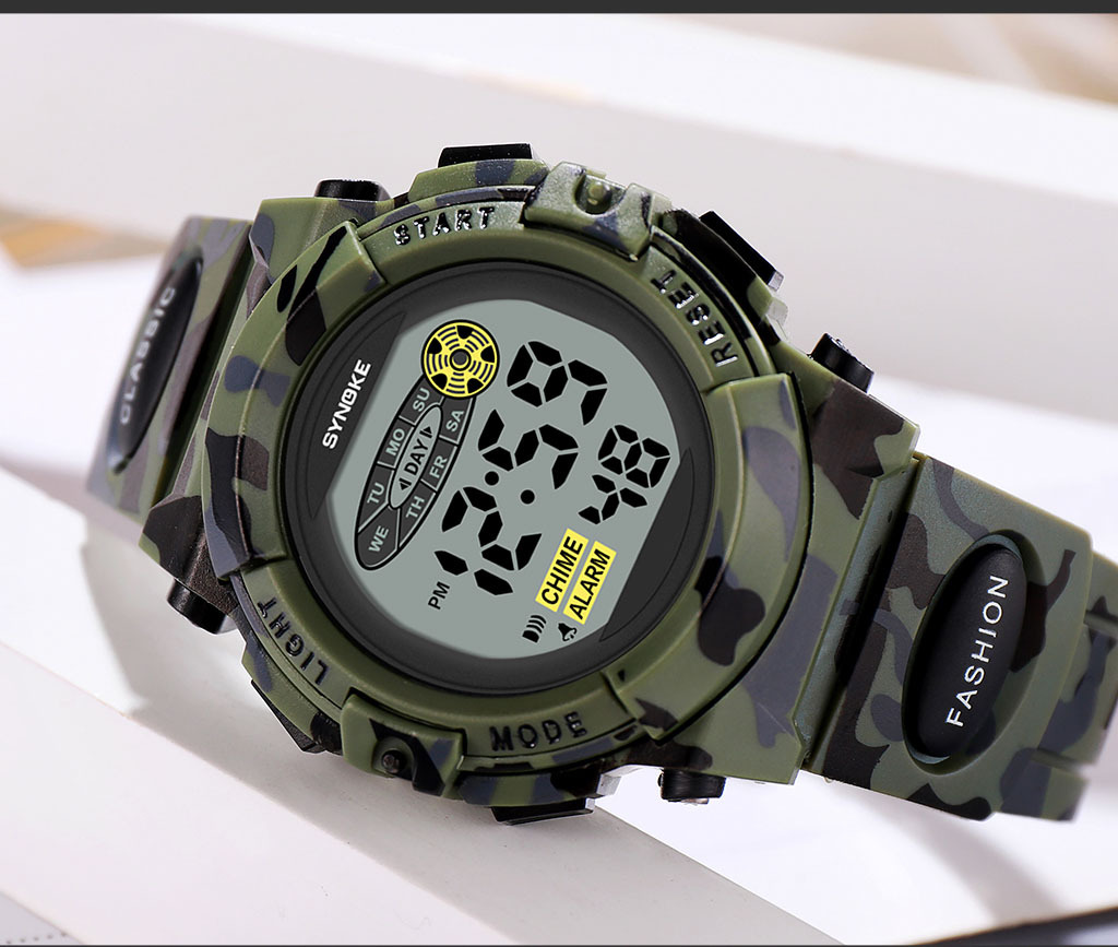 SYNOKE nuevo sudeste asiático popular colorido luminoso niños estudiante reloj electrónico personalizado camuflaje reloj deportivo