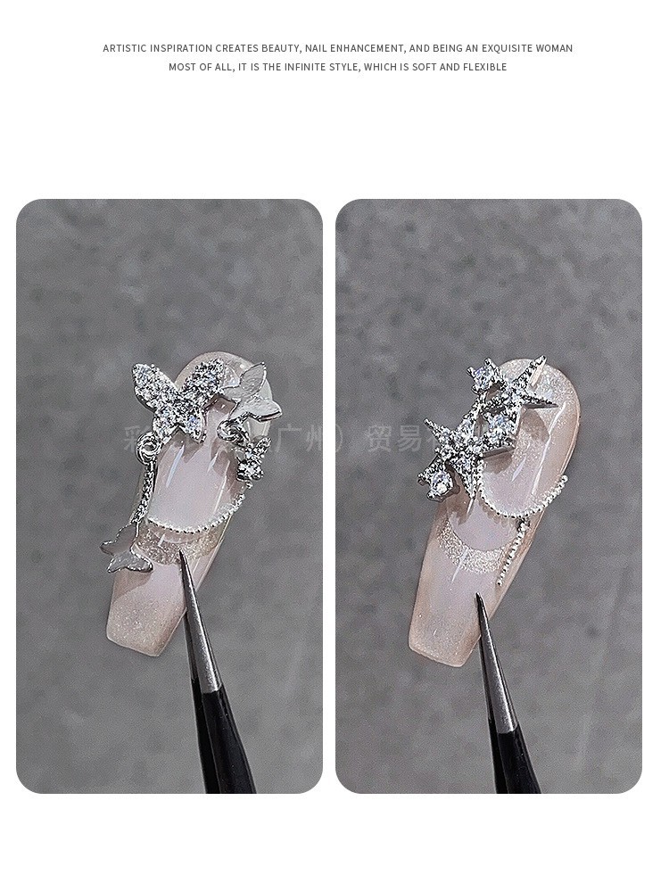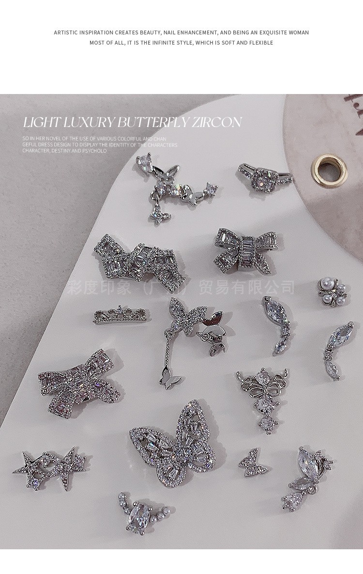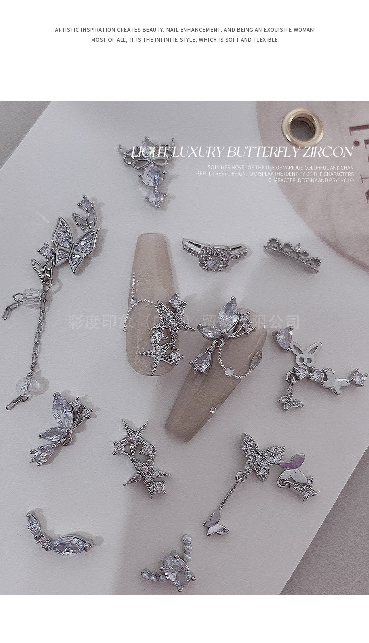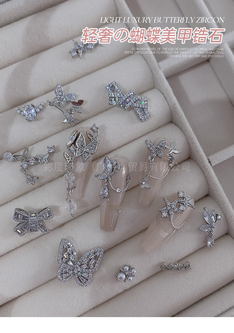 Decoración de Uñas con Mini Mariposas de Circonio, Joyería de Diamantes, Novedad 2025, Lujo Ligero, Adhesivos Tridimensionales de Metal Hueco para Decoración de Uñas